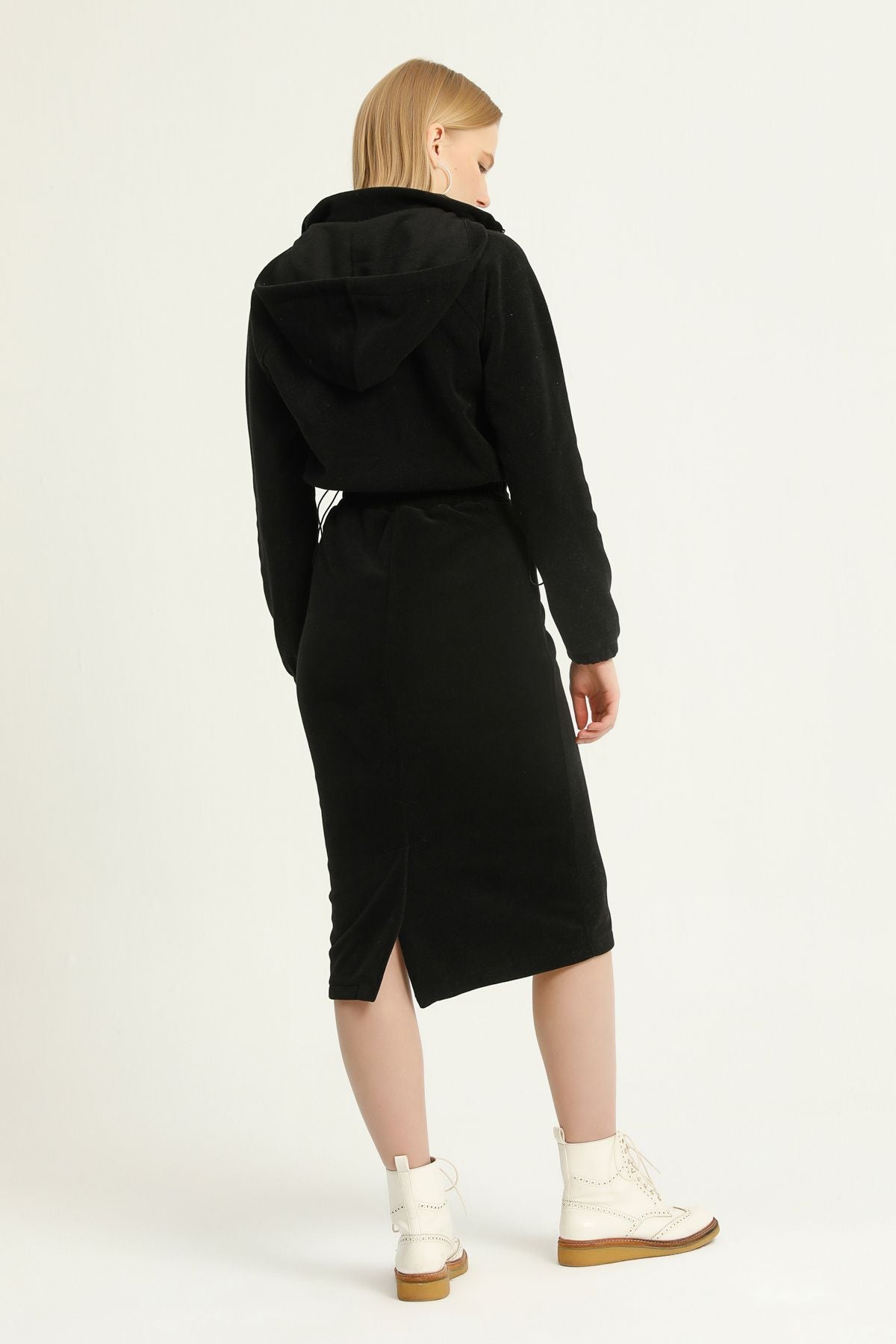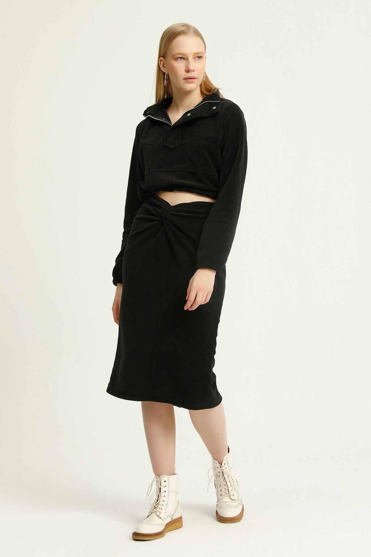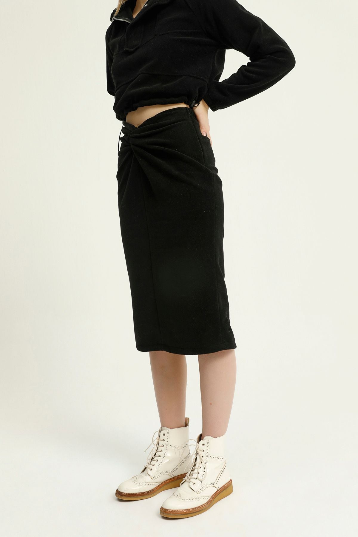 Düğüm Detaylı Polar Midi Etek Siyah