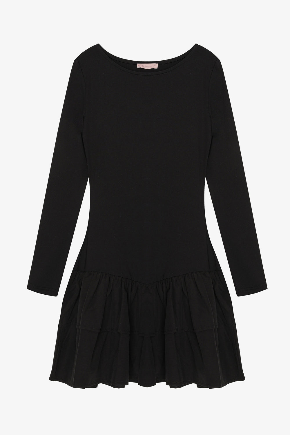 Balen Detaylı Volanlı Mini Elbise Siyah