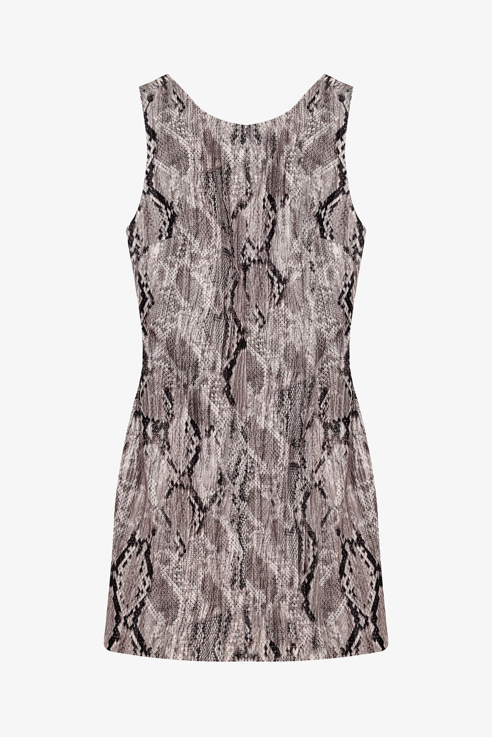 Yılan Desenli Kolsuz Mini Elbise Kahverengi