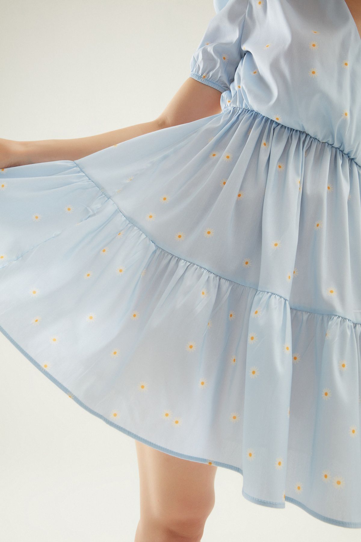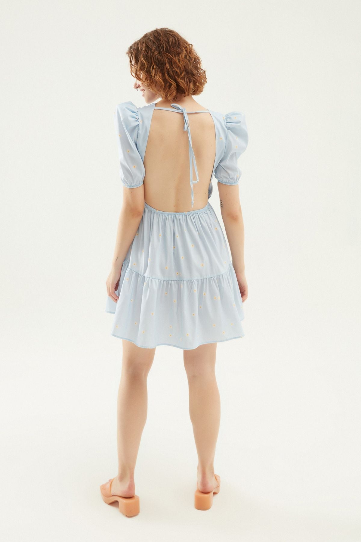 Çiçekli Sırt Dekolteli Kruvaze Elbise Bebe Mavi