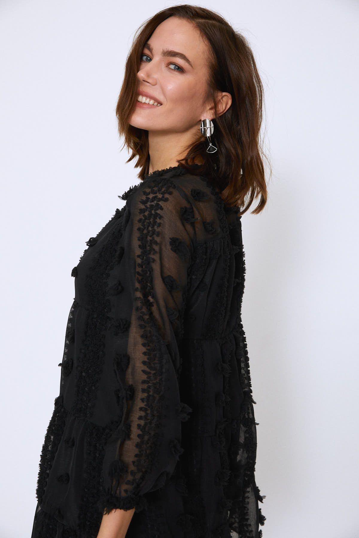 Dantelli Mini Elbise Siyah