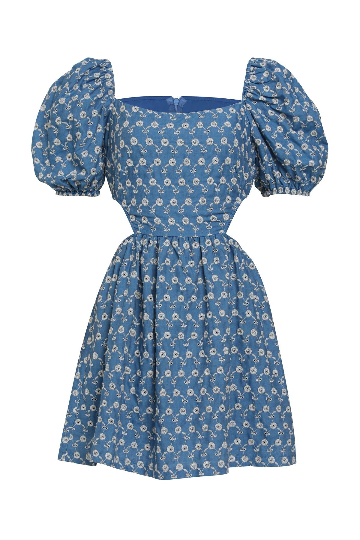 Yanları Pencere Detaylı Elbise Mavi