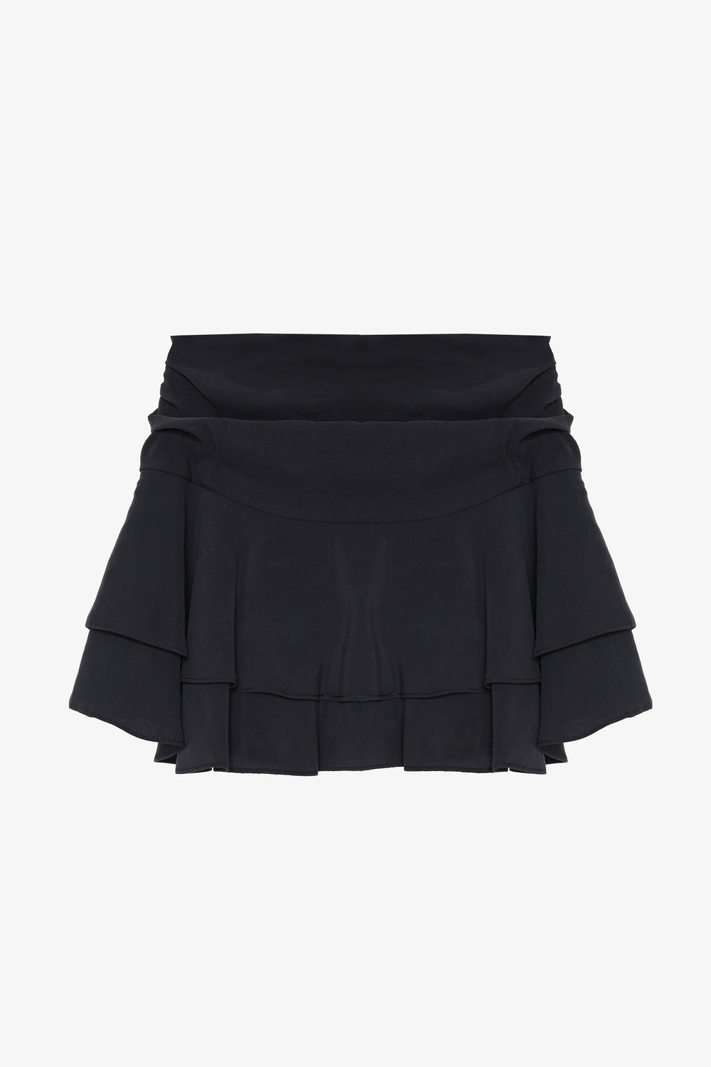 Kemerli Pileli Tüvit Mini Etek Siyah