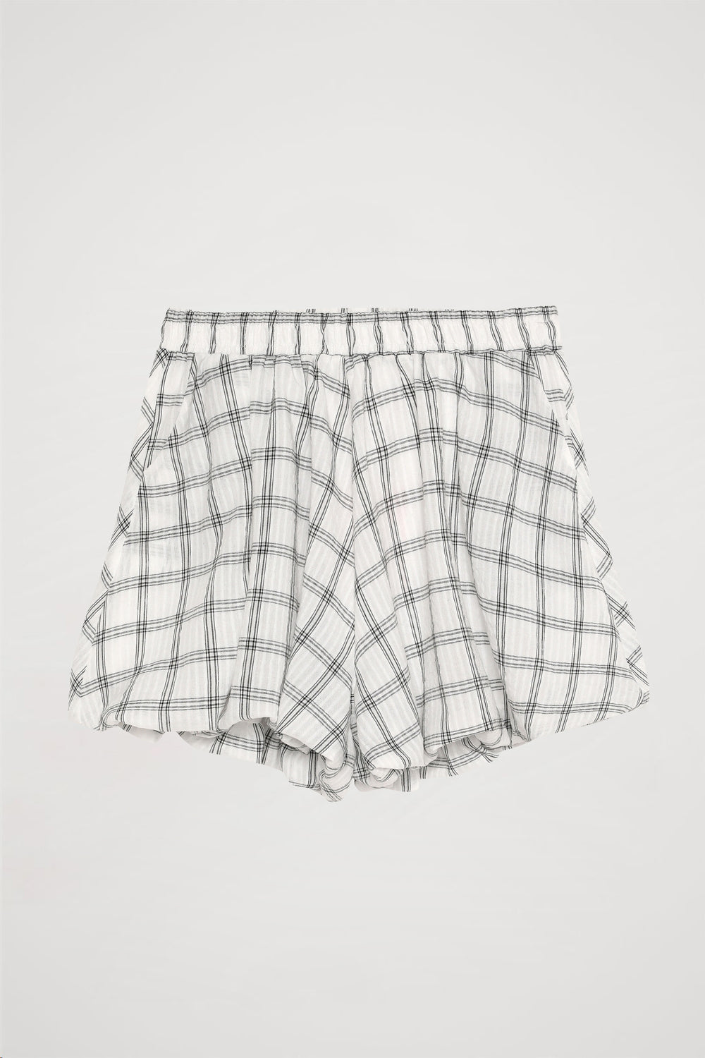 Ekose Çizgili Mini Balon Şort Ekru