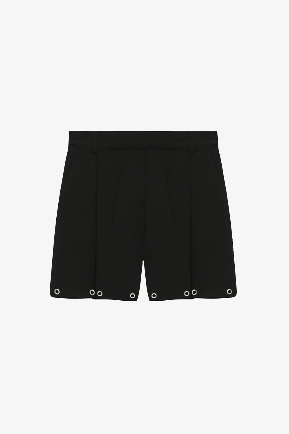 Kuş Gözü Aksesuarlı Önü Pileli Mini Şort Siyah