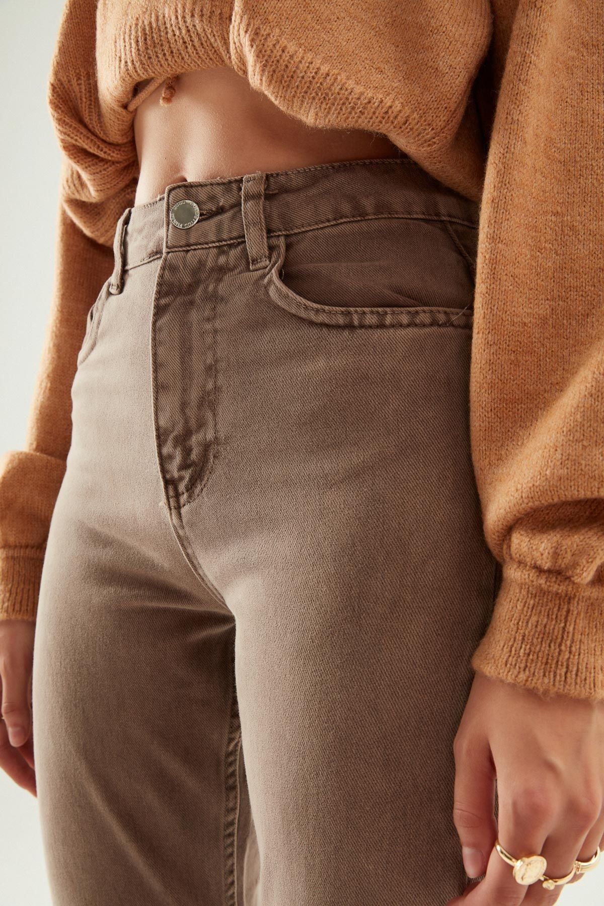 Eskitme Mom Jean Açık Kahve