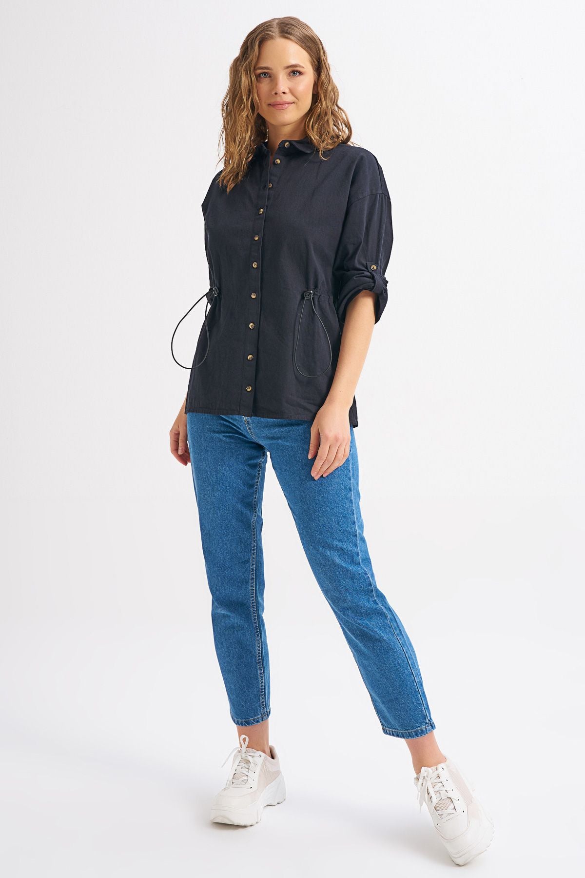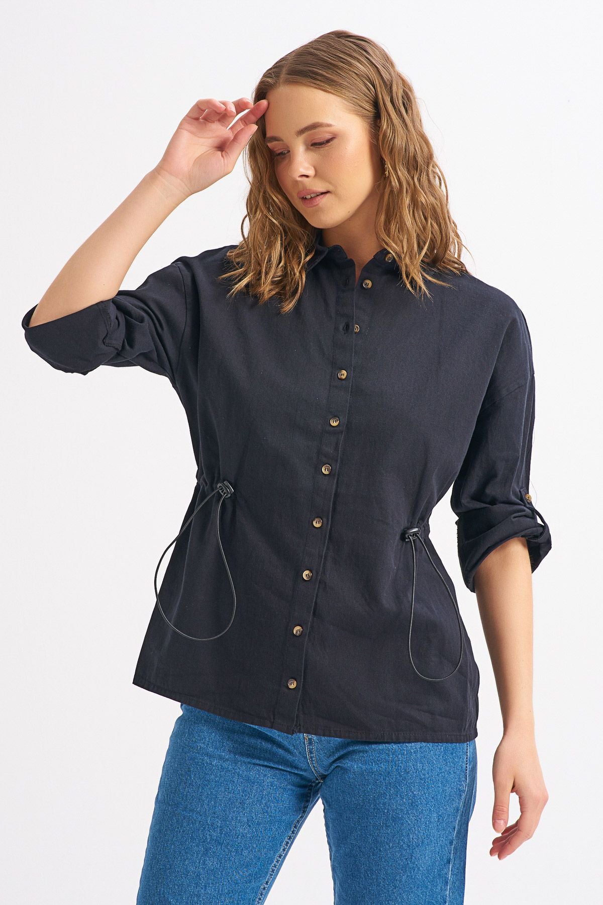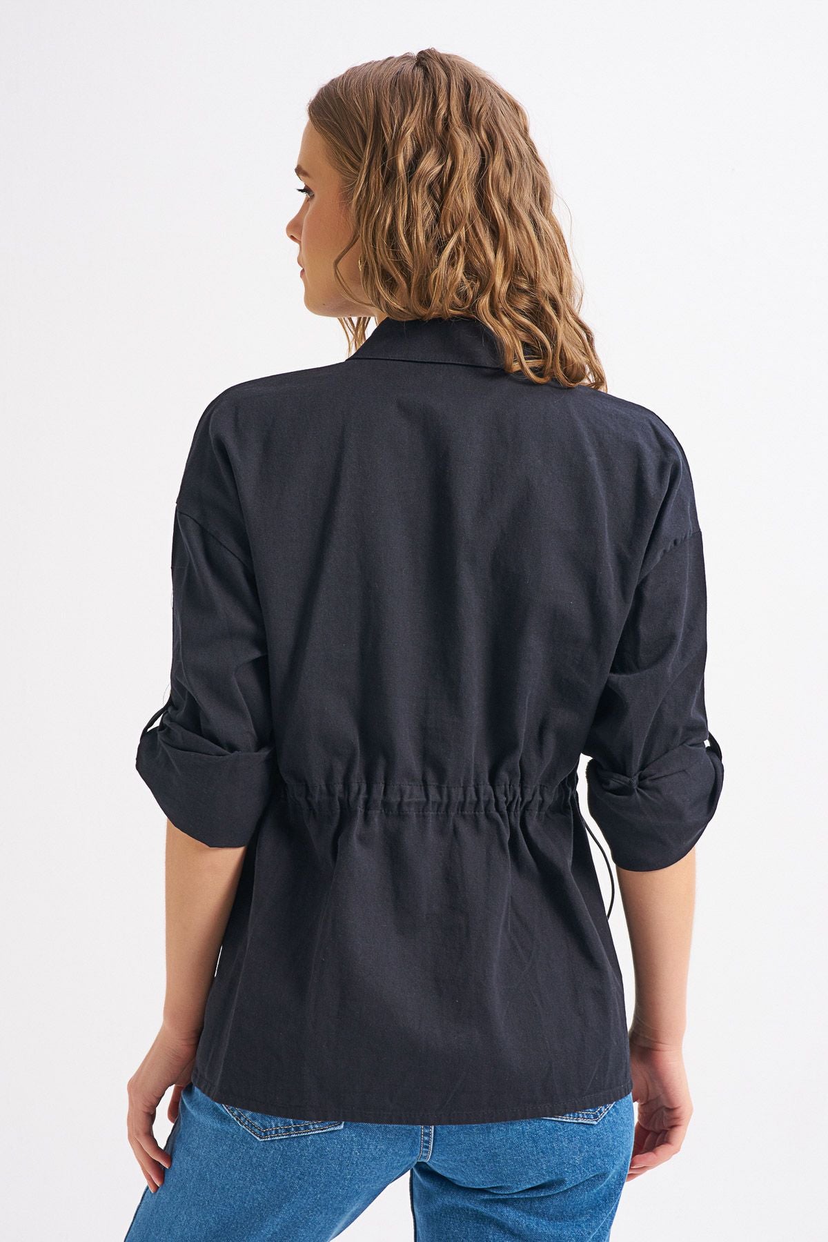 %100 pamuklu nefes alan dokusu ve hem kullanışlı hem modern tasarımı ile basit bir jean ile rahatça kombinleyebileceğin beli büzgülü gömlek.