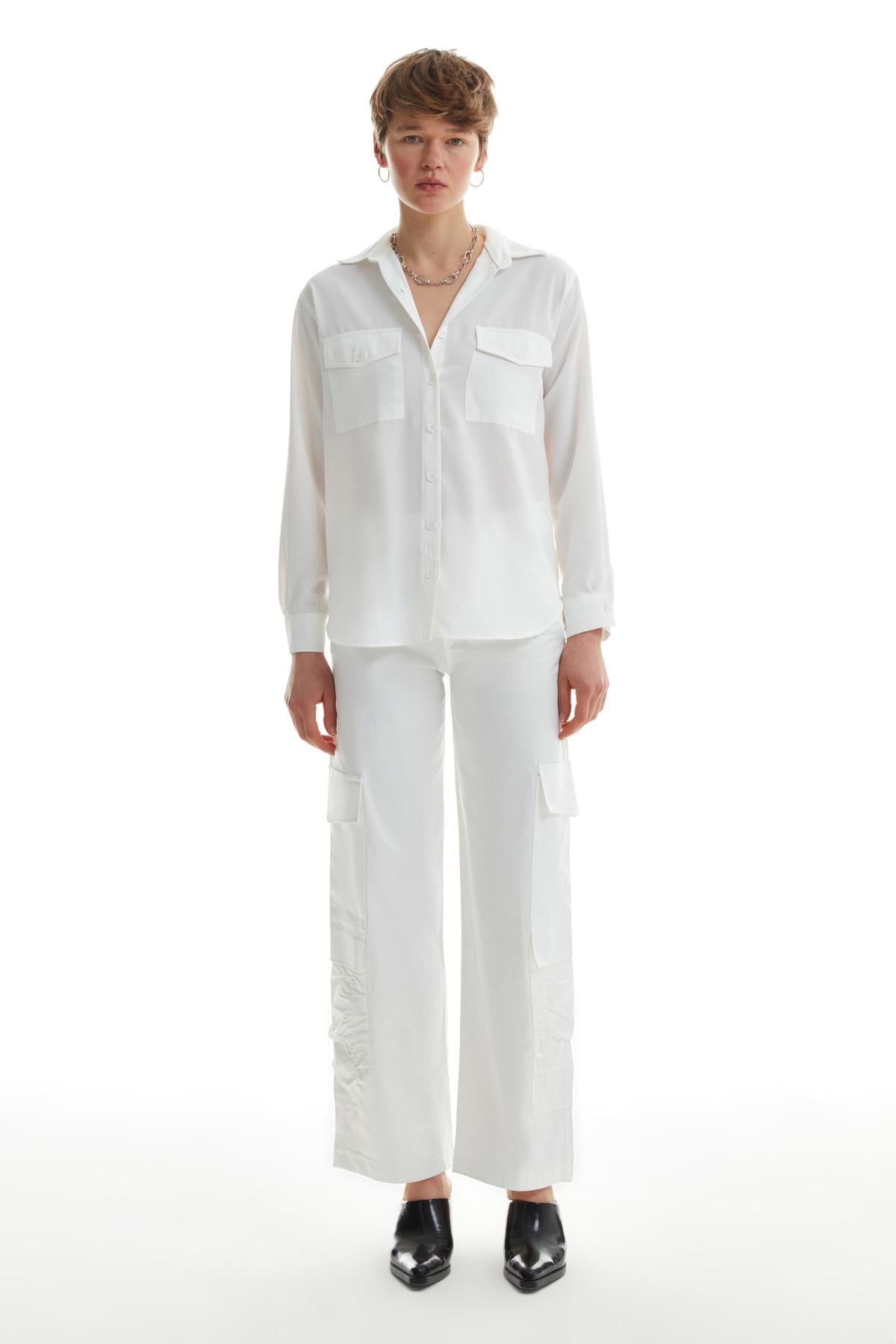 Çift Cepli Gömlek Ekru