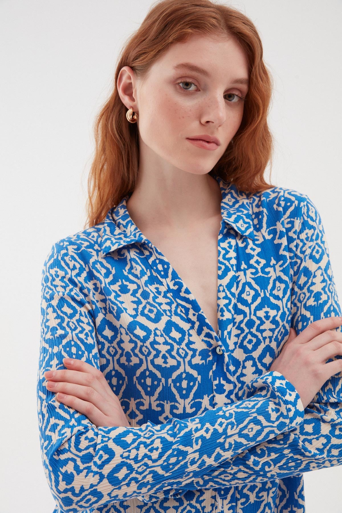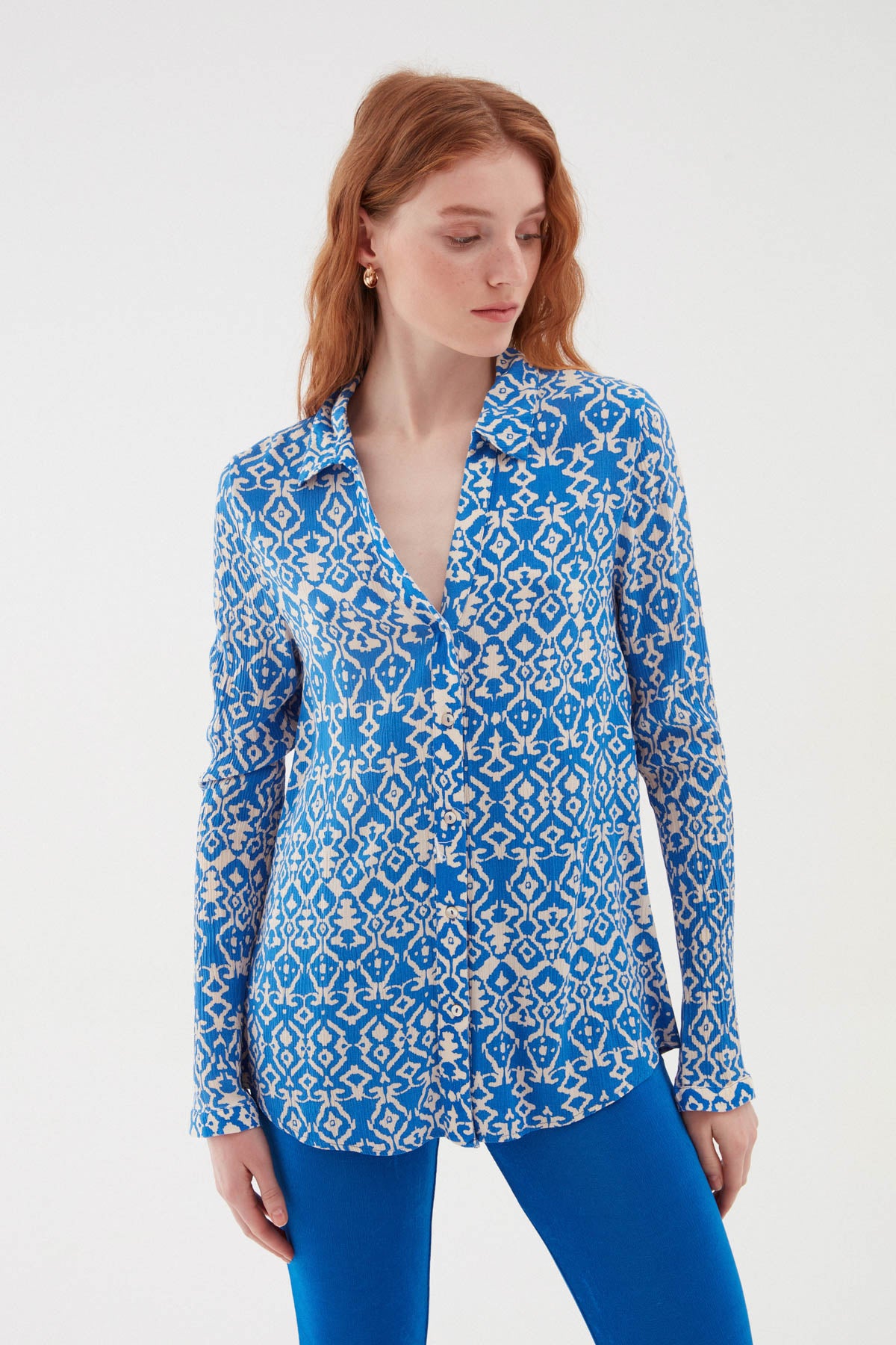 Vİskon gömlek modelİ, salaş yapısının yanı sıra desenİ İle farklı bİr kombİn parçası olarak bu sezonda senİ beklİyor. Desenlİ gömlek, yumuşak dokulu ve % 100 vİskondur.