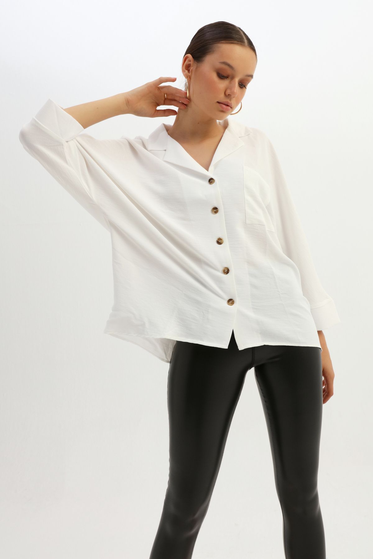 Modern formunun yanı sıra oversize kesimi ve farklı renk seçenekleri ile basic kombinlerine farklı bir hava katmaya hazır bu gömleğe çok çabuk alışacaksın...