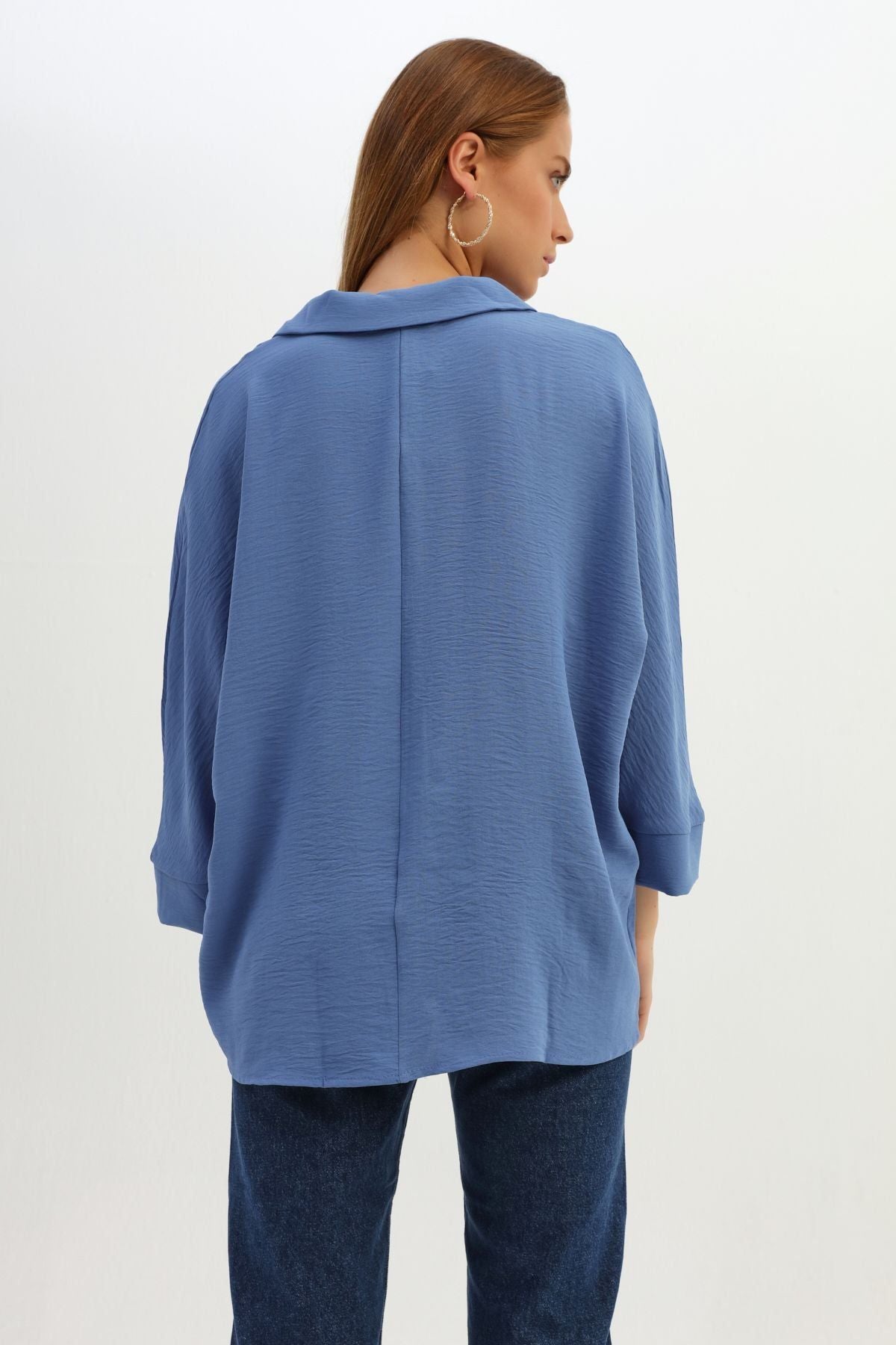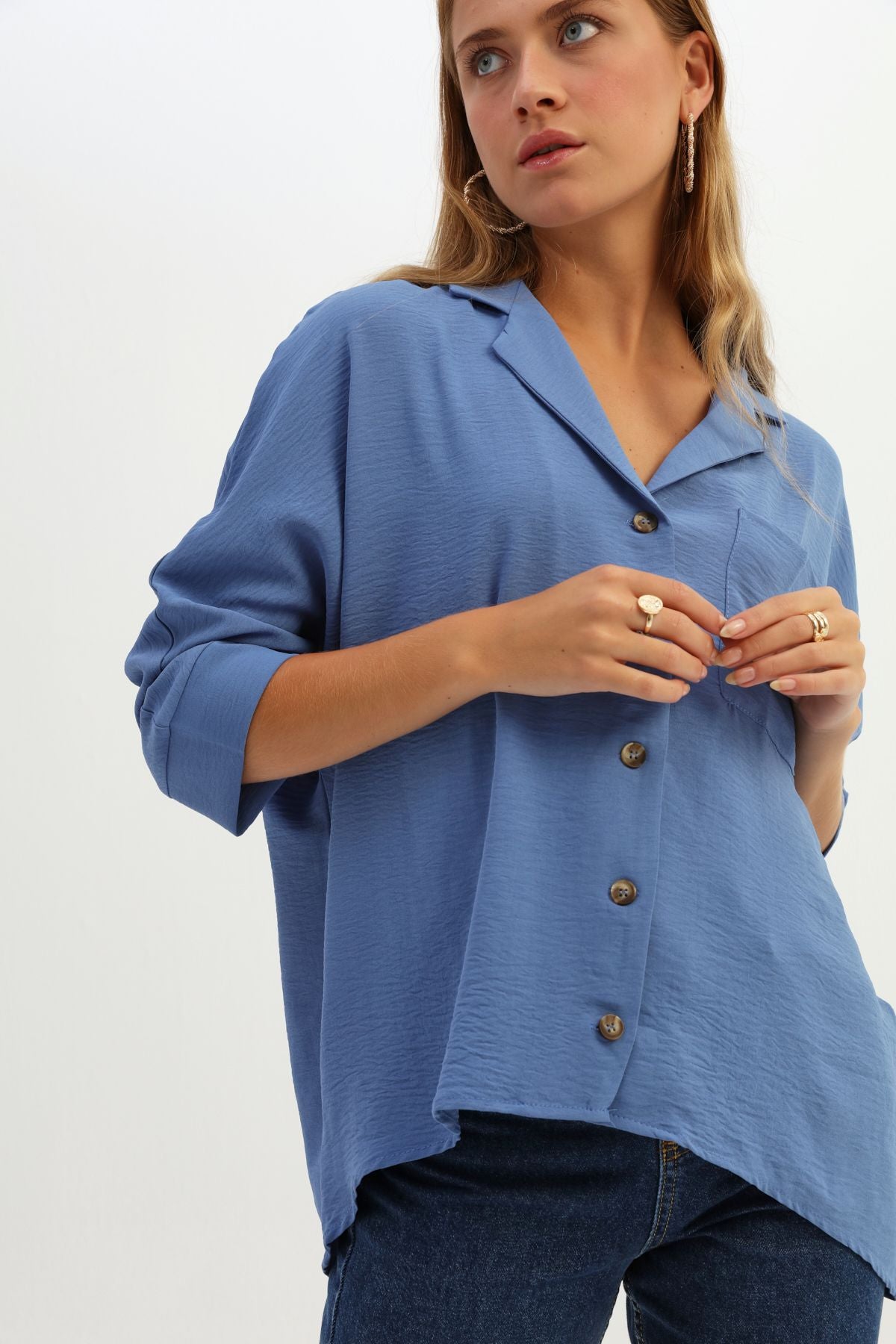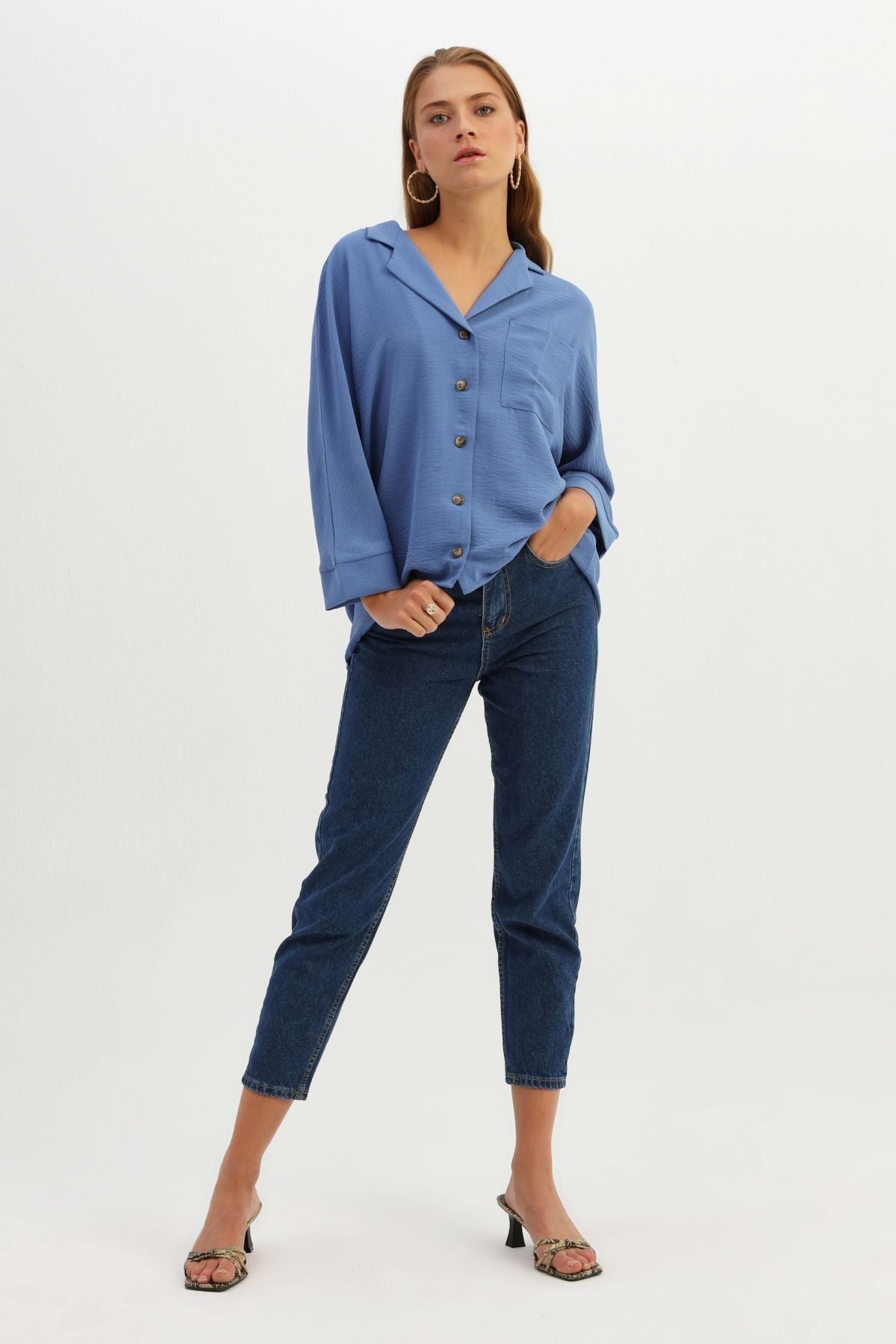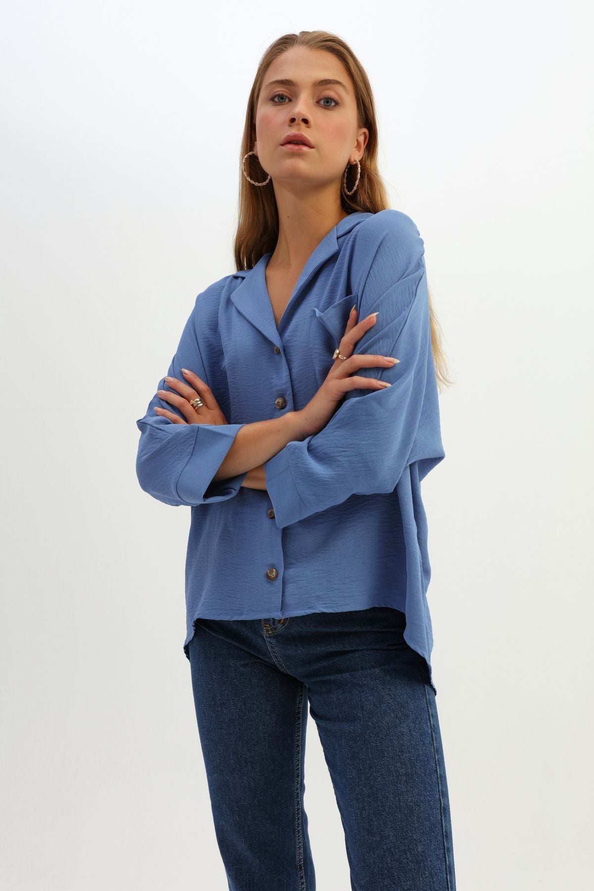 Tek Cepli Oversize Gömlek İndigo