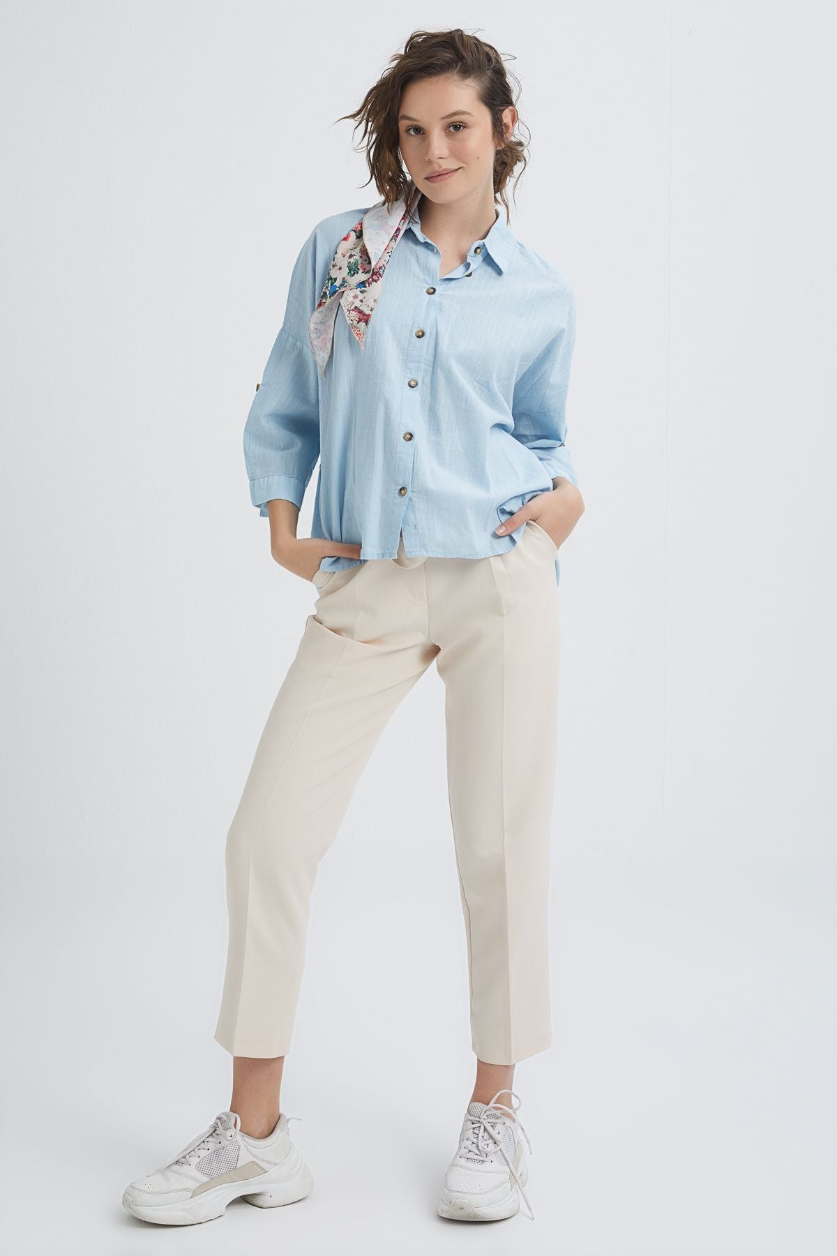Gömlek tarzını çok sevenler için tasarlanan ürün, yumuşak kumaşı sayesinde seni sarmaya hazır. Gömleğini bahar stiline eşlik eden aksesuarlarla daha da canlandırabilirsin.