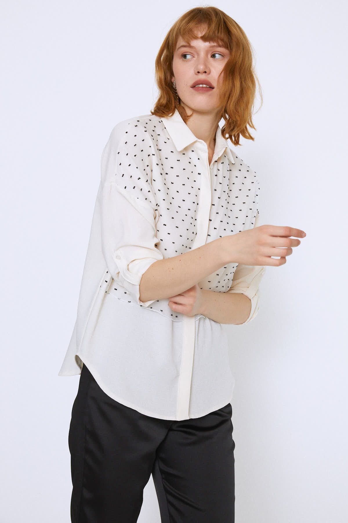Göz alıcı bir stile davet eden yeni bir parçaya yer açma vakti. Ön kısmında yer alan hareketli detayları ile dikkat çeken gömlek, kombinlerini keyifle yorumlaman için yola çıkmaya hazır.