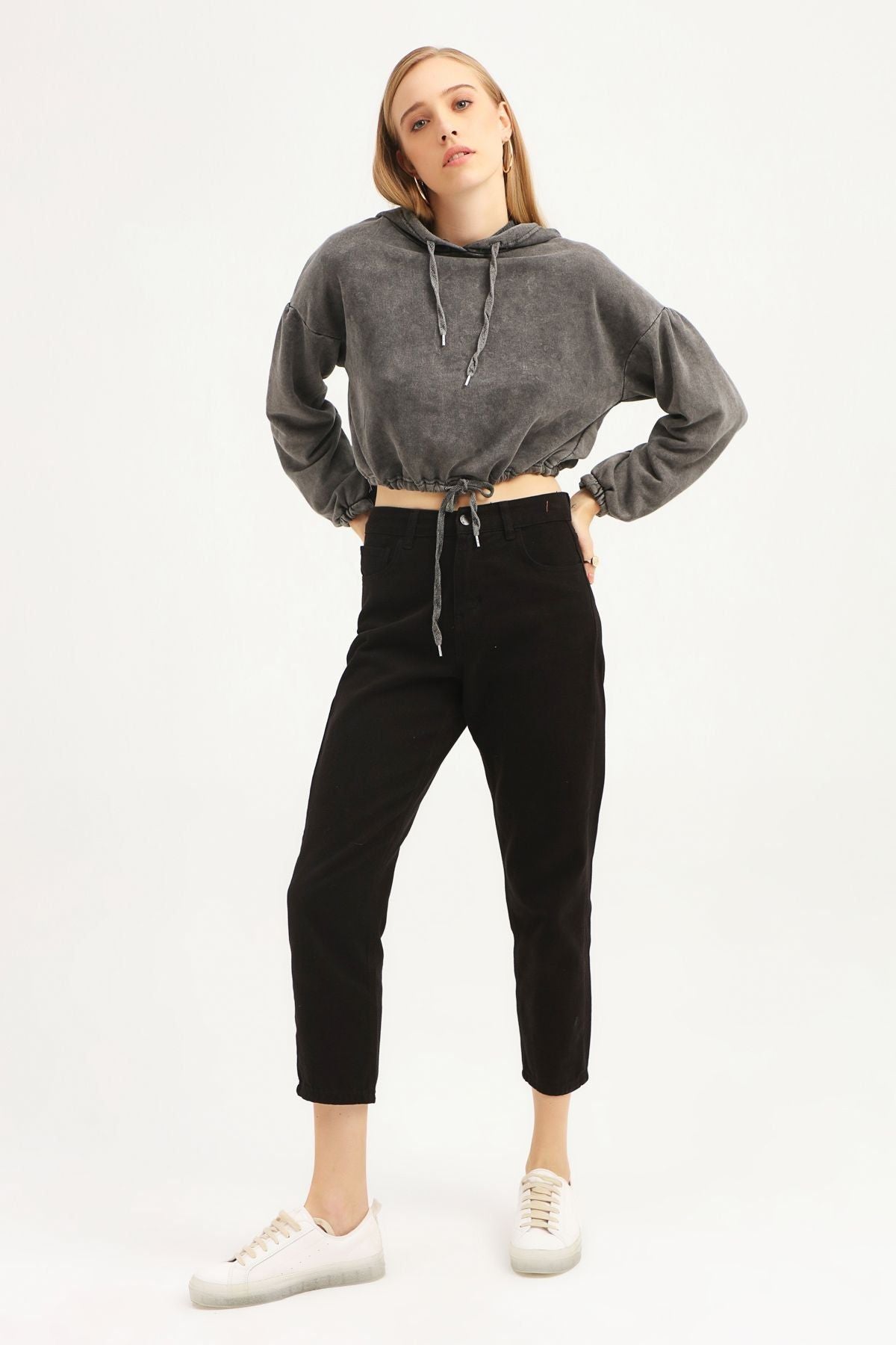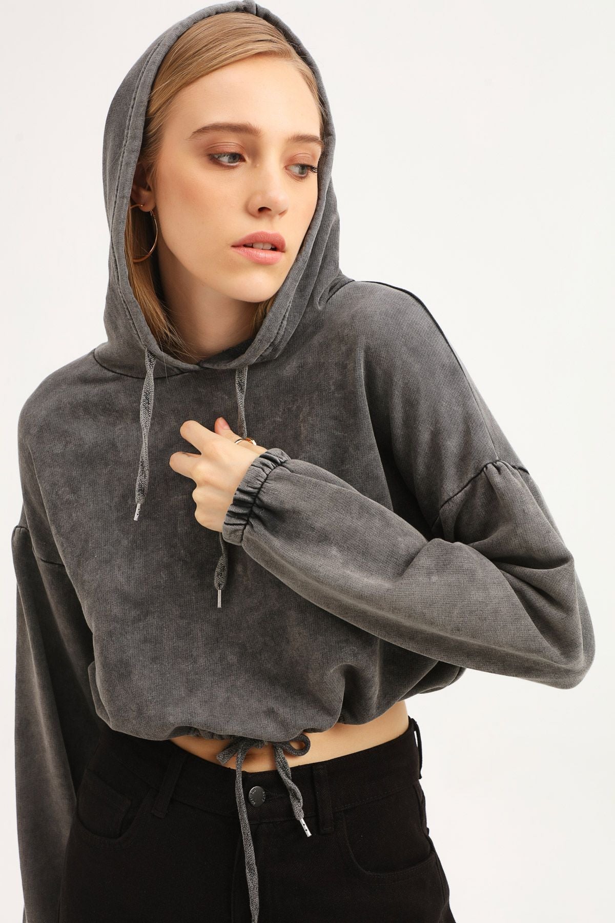Beli Büzgülü Oversize Sweatshirt Antrasit