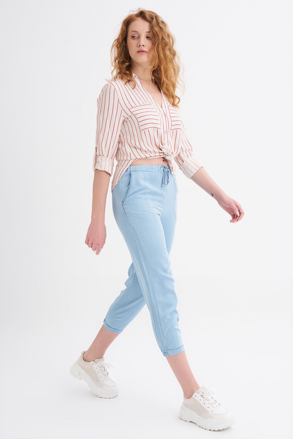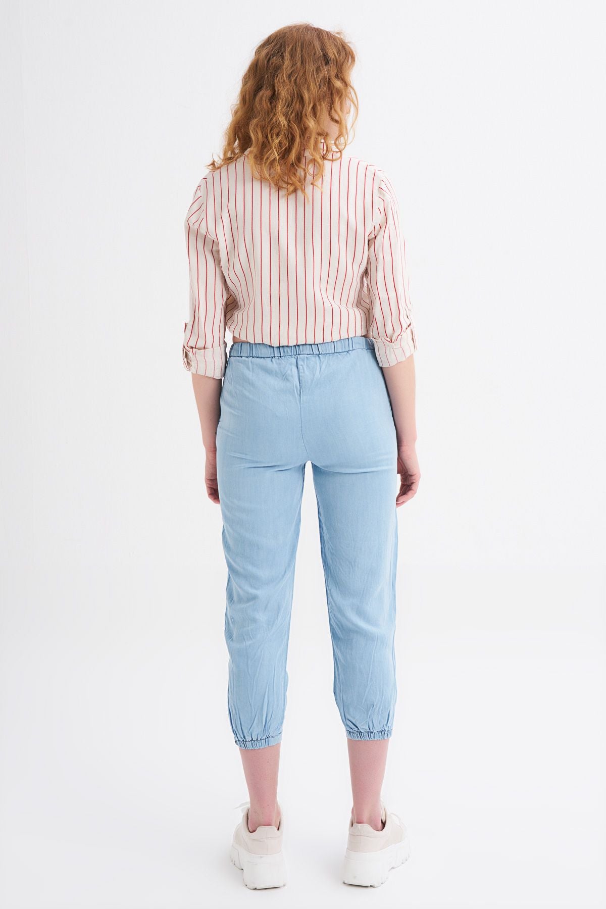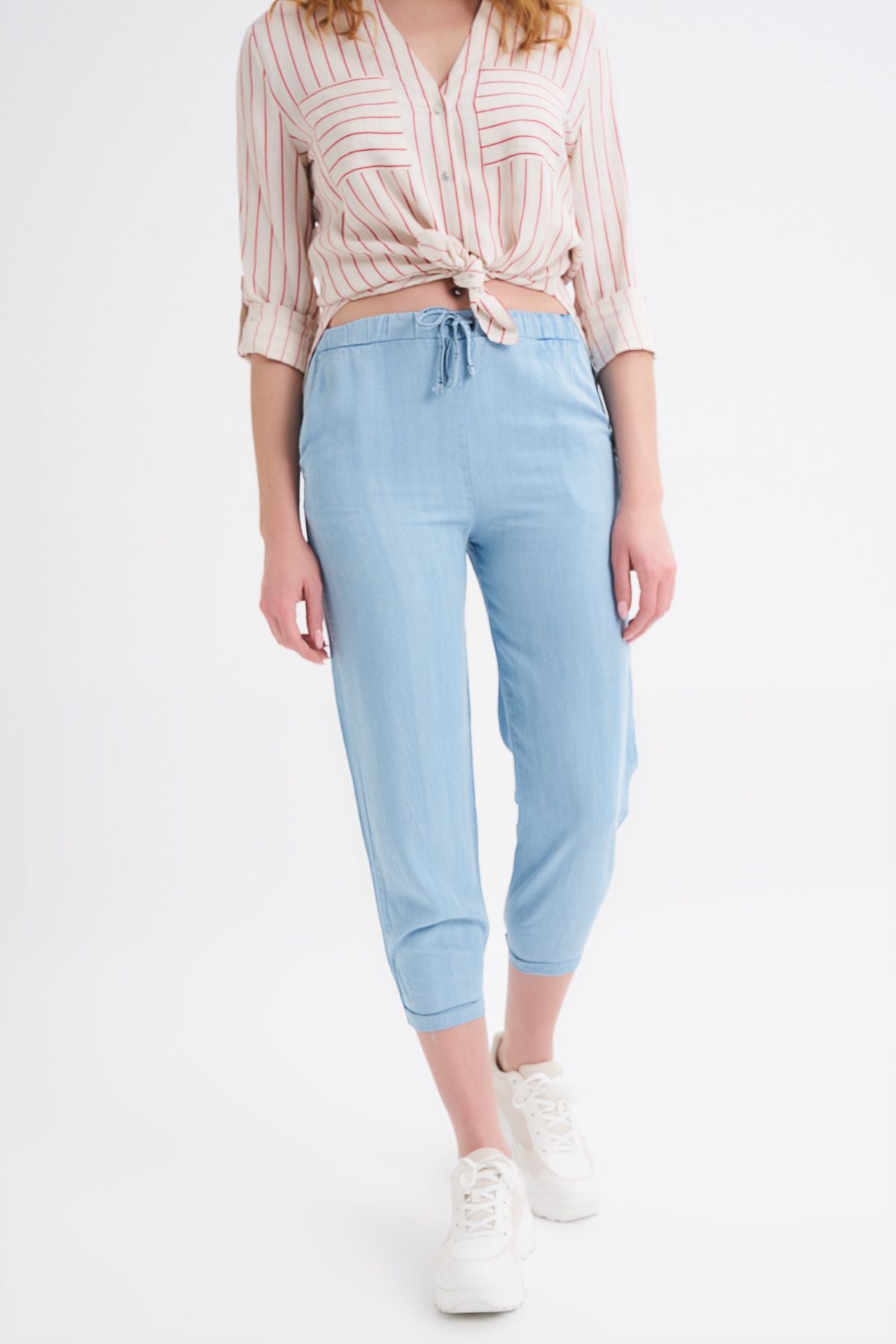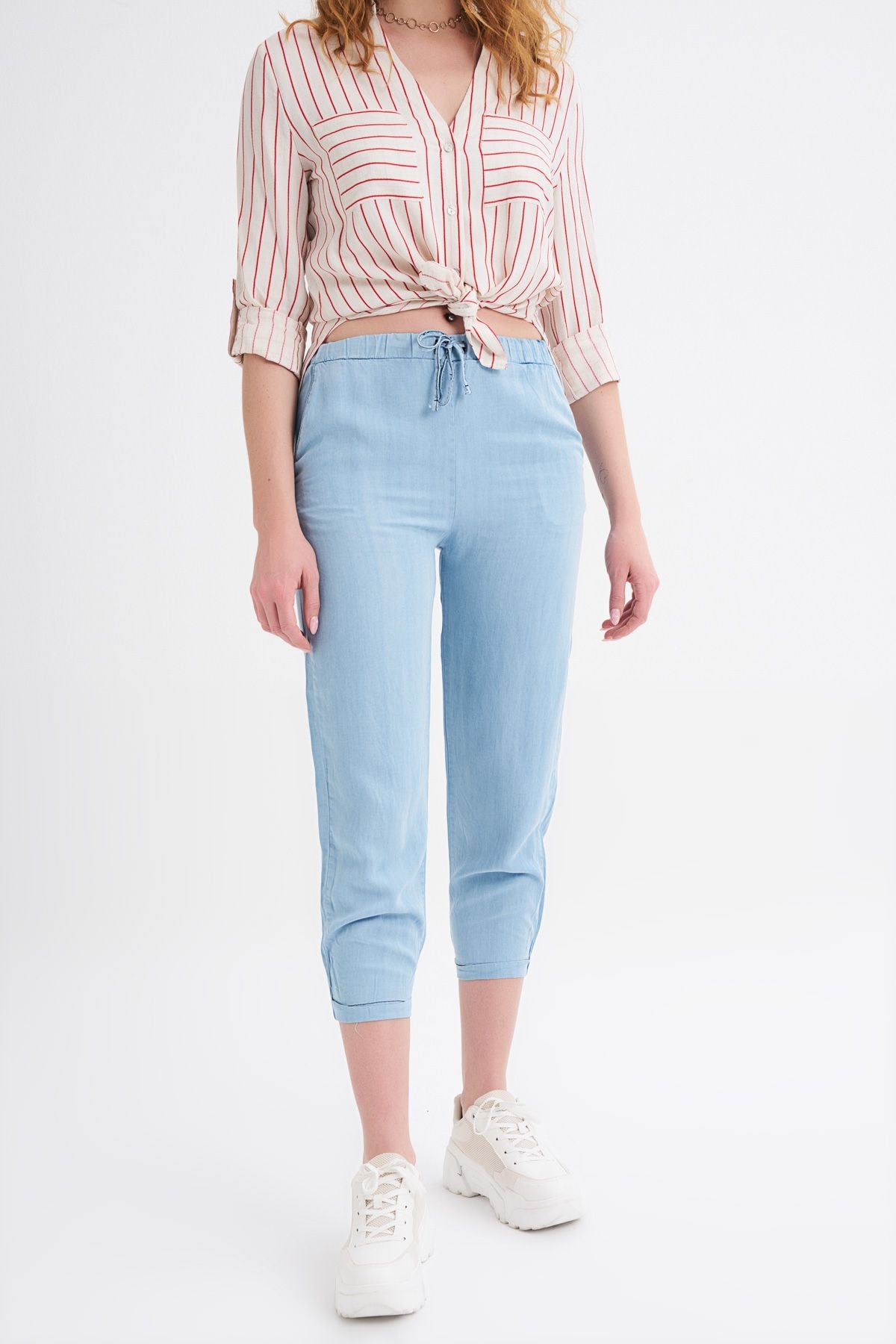 Bağcık Detaylı Bol Pantolon Açık Mavi