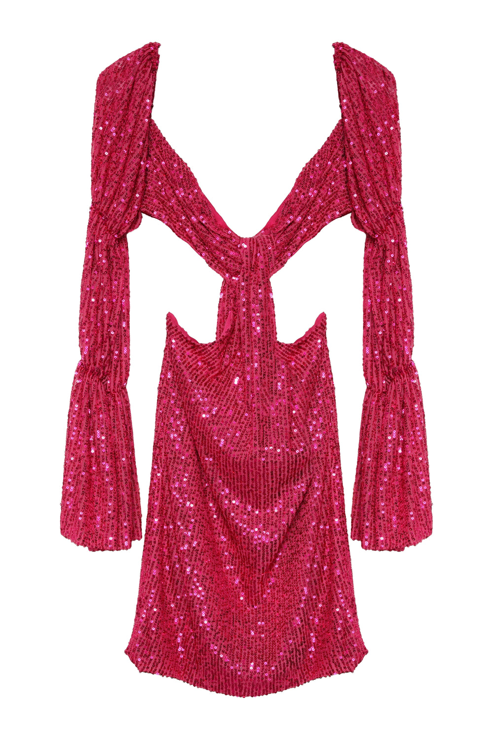 Cut Out Detaylı Payetli Mini Elbise Fuşya