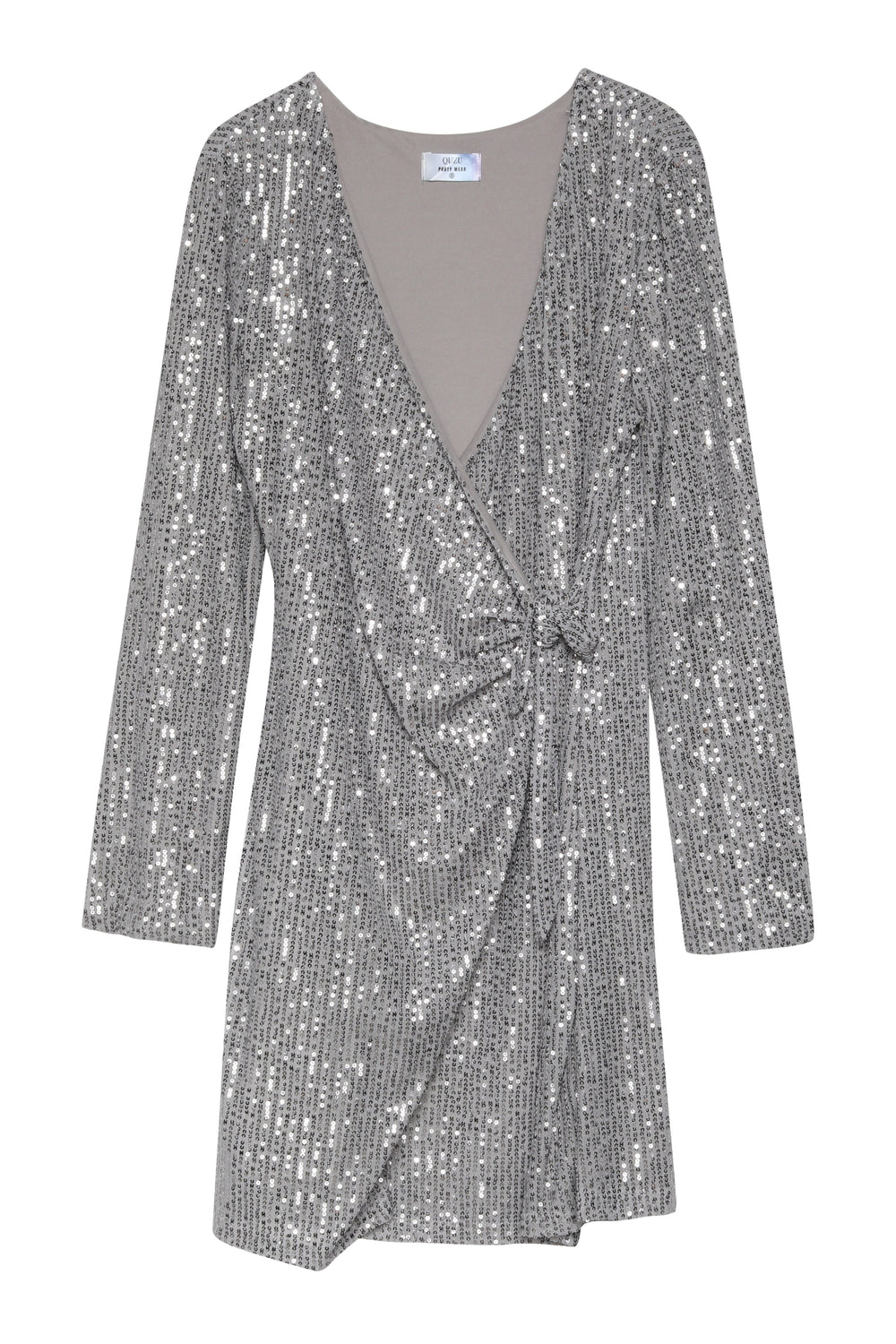 Kruvaze Bağlamalı Payetli Mini Elbise Gri