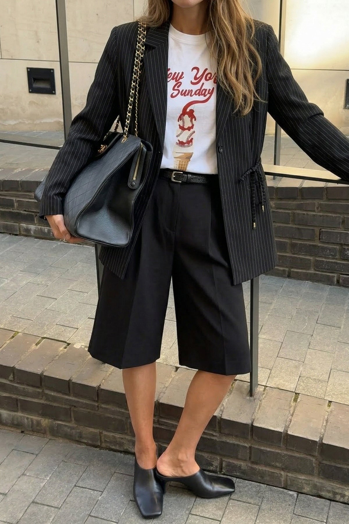 Yüksek bel, ince kemer detaylı, önden pileli, yan cepli, fermuar ve agraf kapamalı, diz altı boy, geniş paça, bermuda form şort.