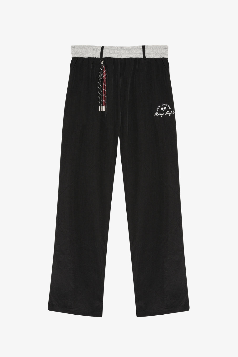 Kontrast Kumaş Garnili Nakışlı Beli Lastikli Pantolon Siyah