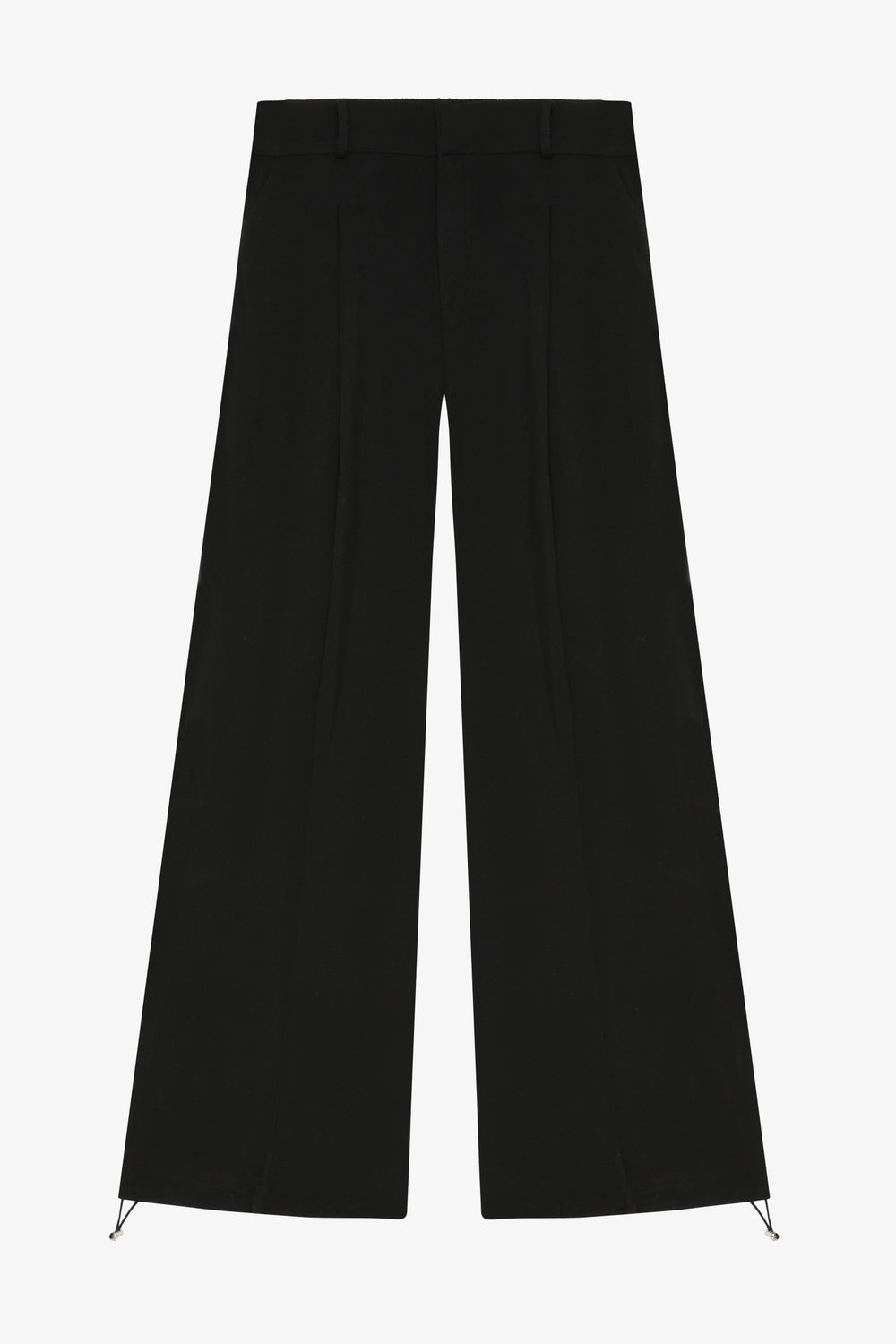 Şerit Garnili Kontrast Kumaş Bol Paça Pantolon Siyah