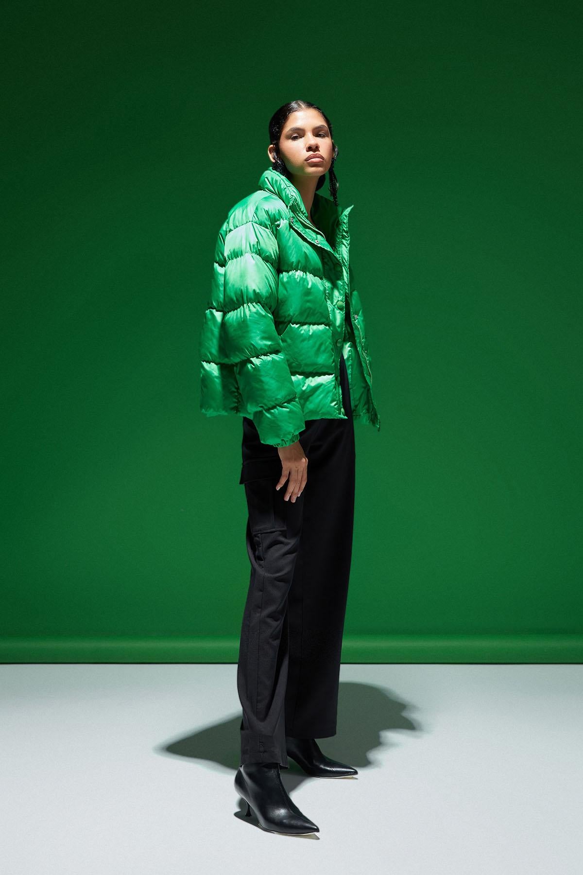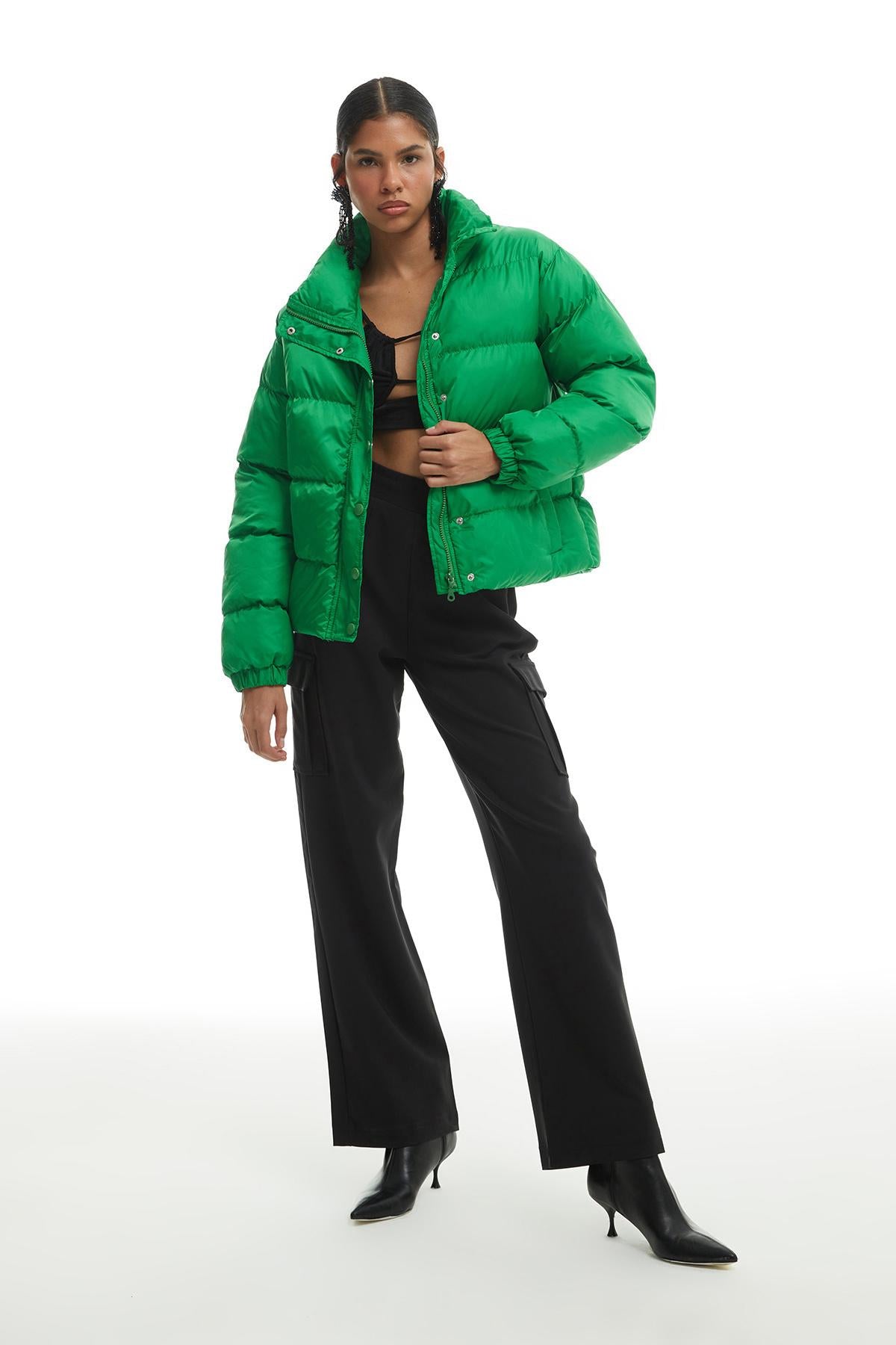 Kısa Şişme Mont Yeşil