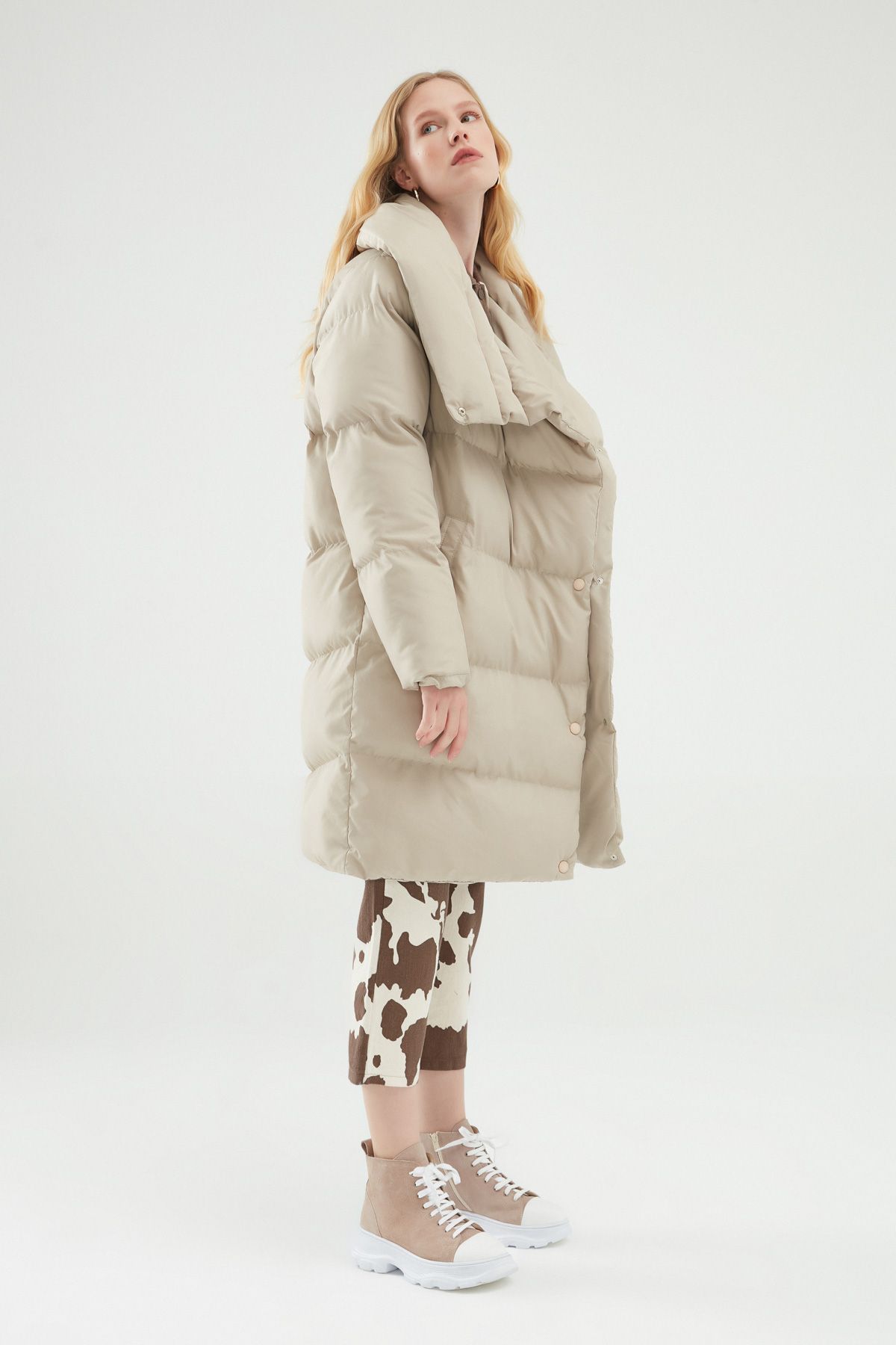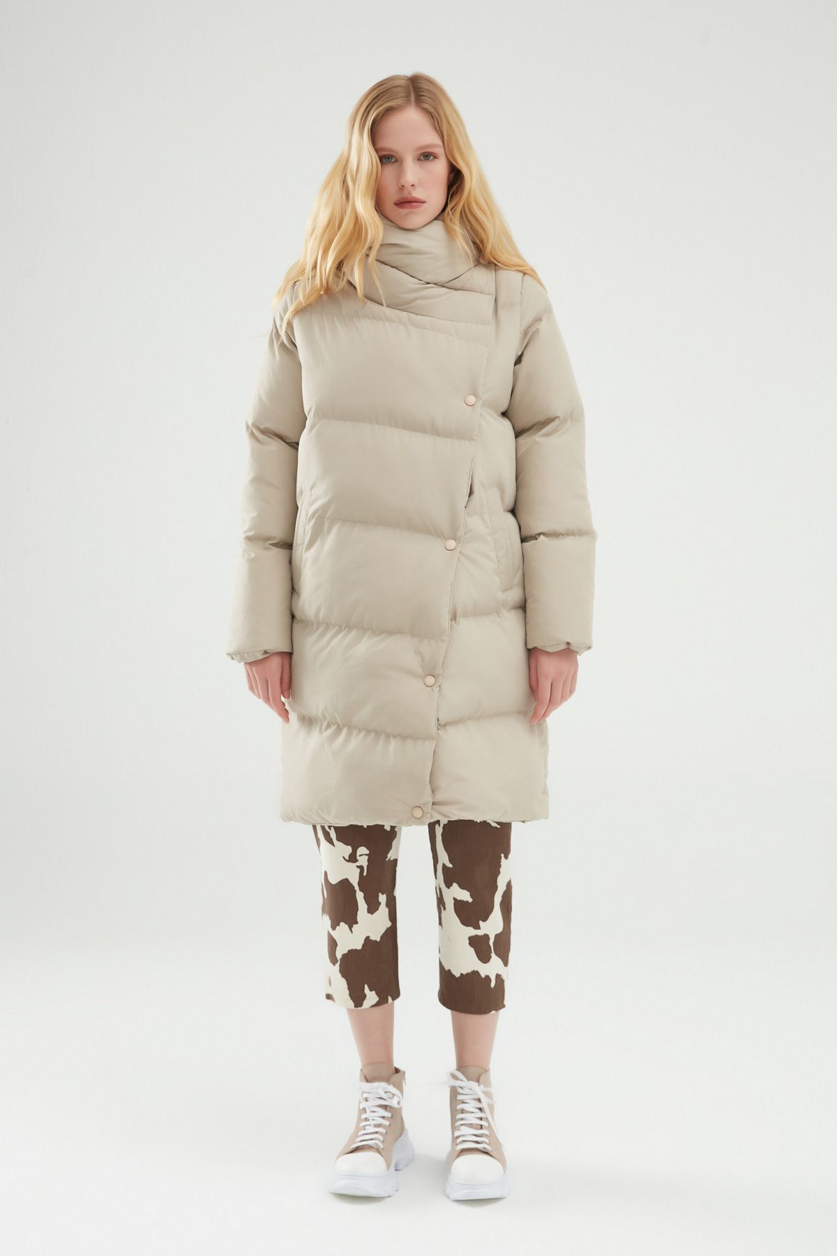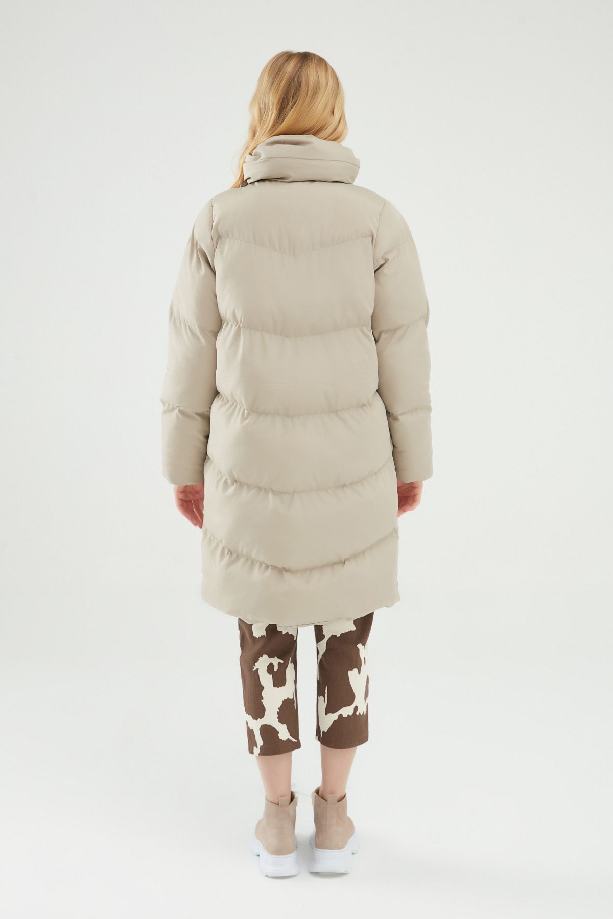 Kruvaze Şişme Mont Bej
