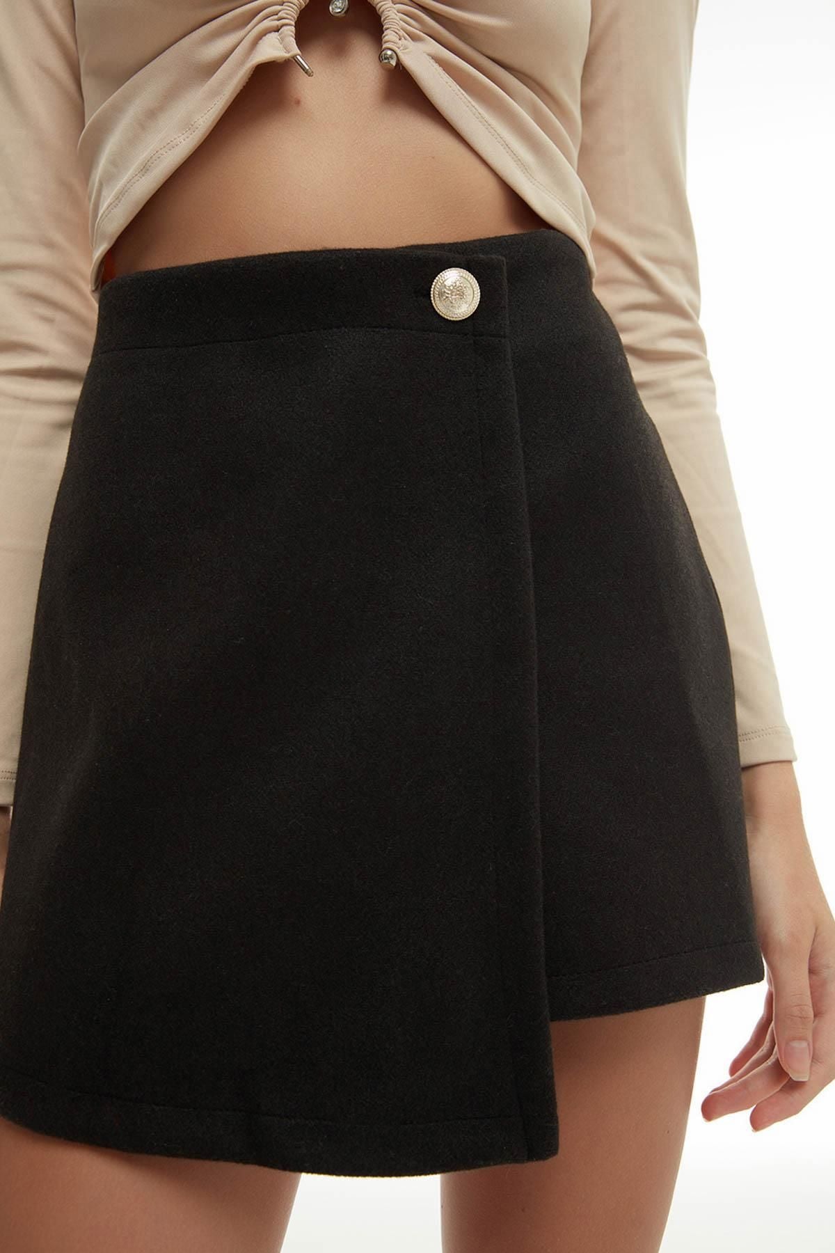 Mini Kaşe Şort Etek Siyah
