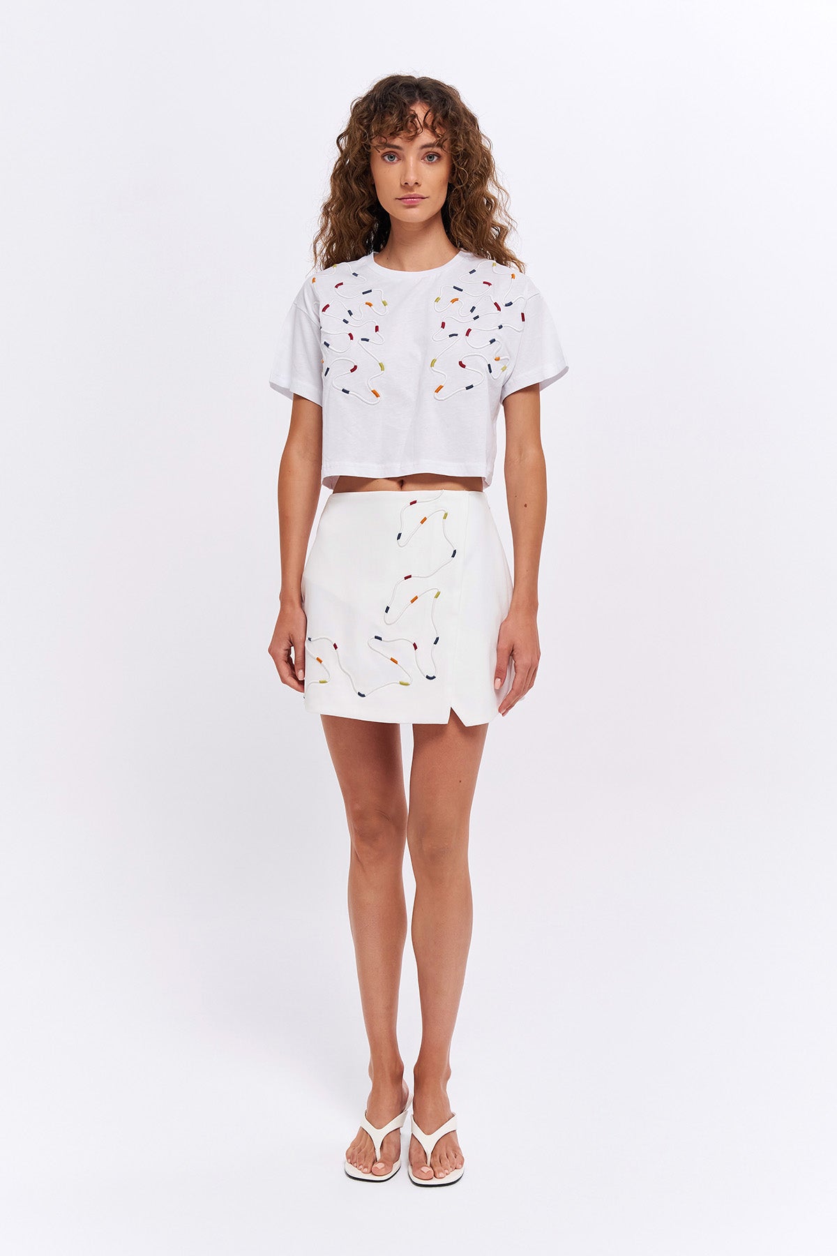 Renkli Nakış Detaylı Şort Etek Ekru