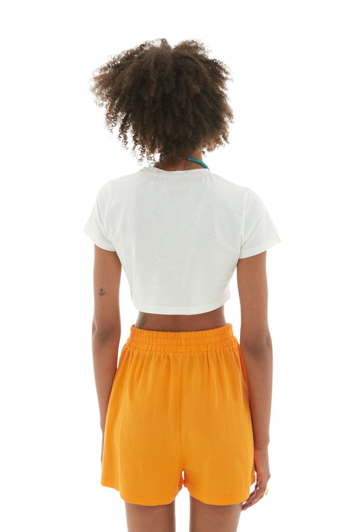 Beli Lastikli Keten Şort Turuncu
