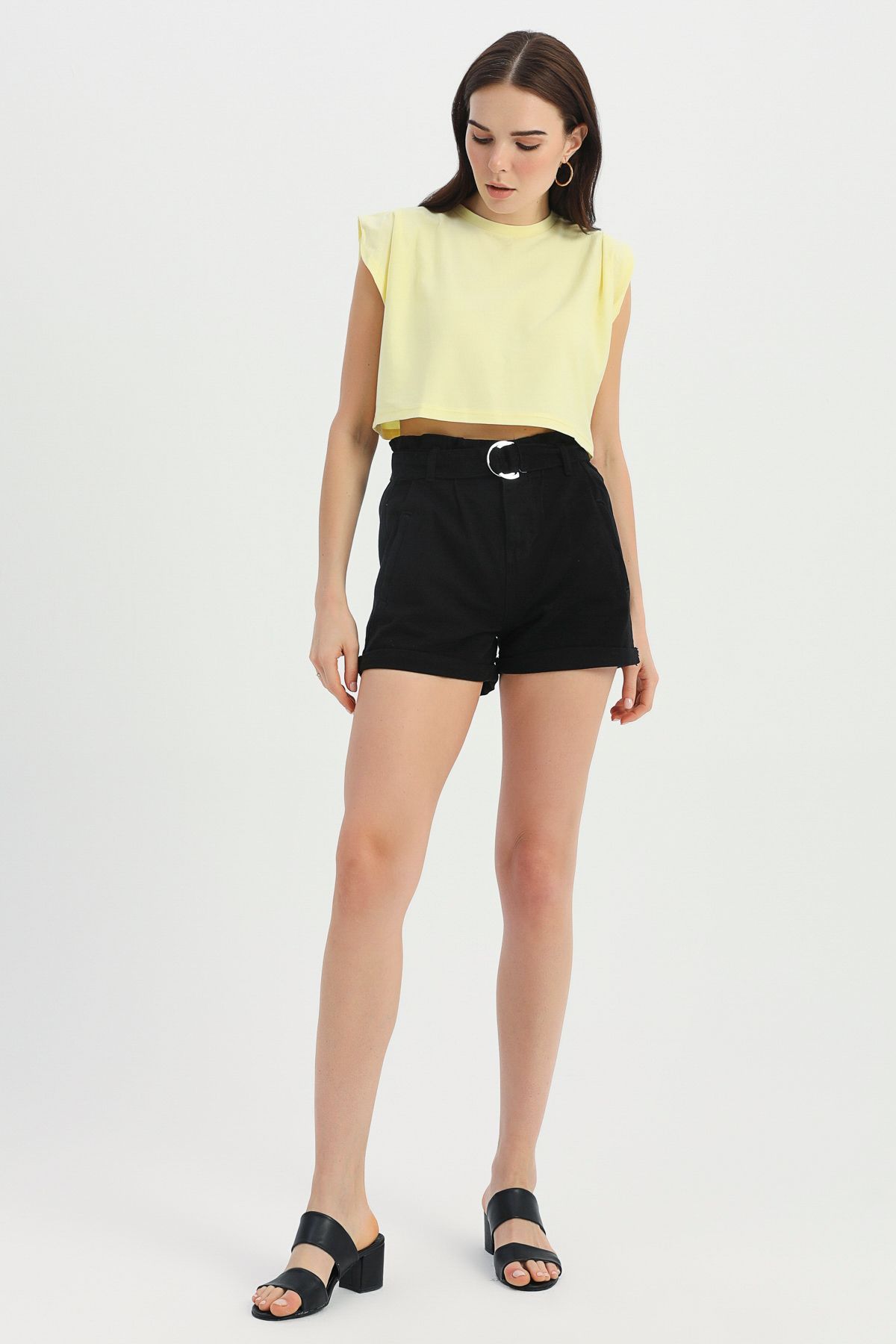 Kemerli Kot Şort Siyah