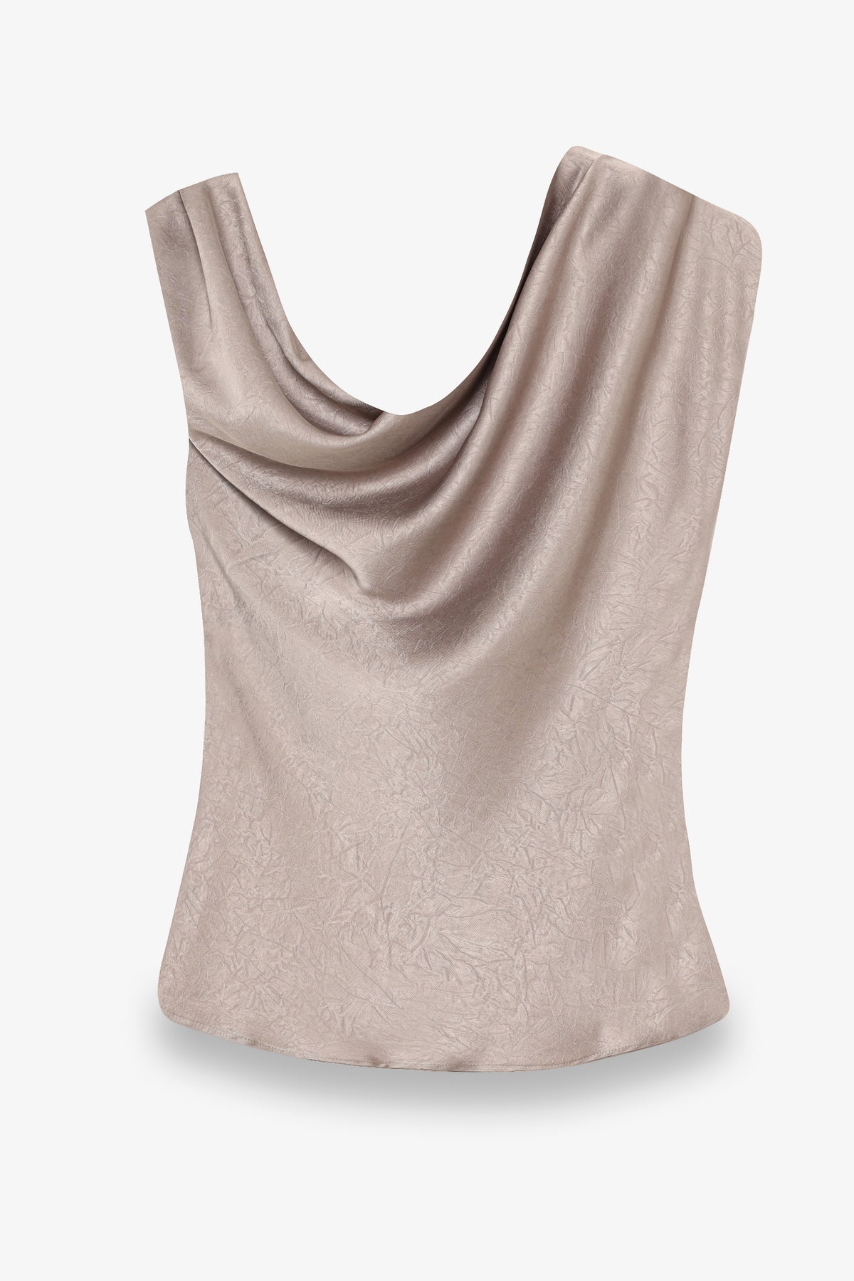 Asimetrik Drapeli Aksesuarlı Saten Bluz Vizon