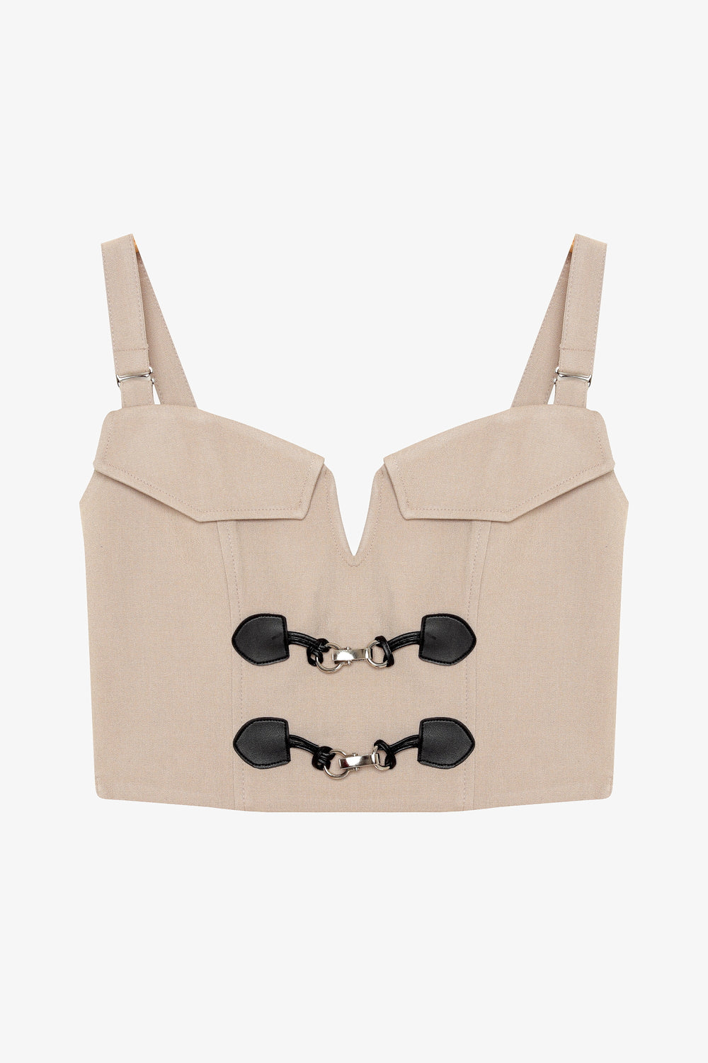 Toka Aksesuarlı Askılı Büstiyer Bluz Bej