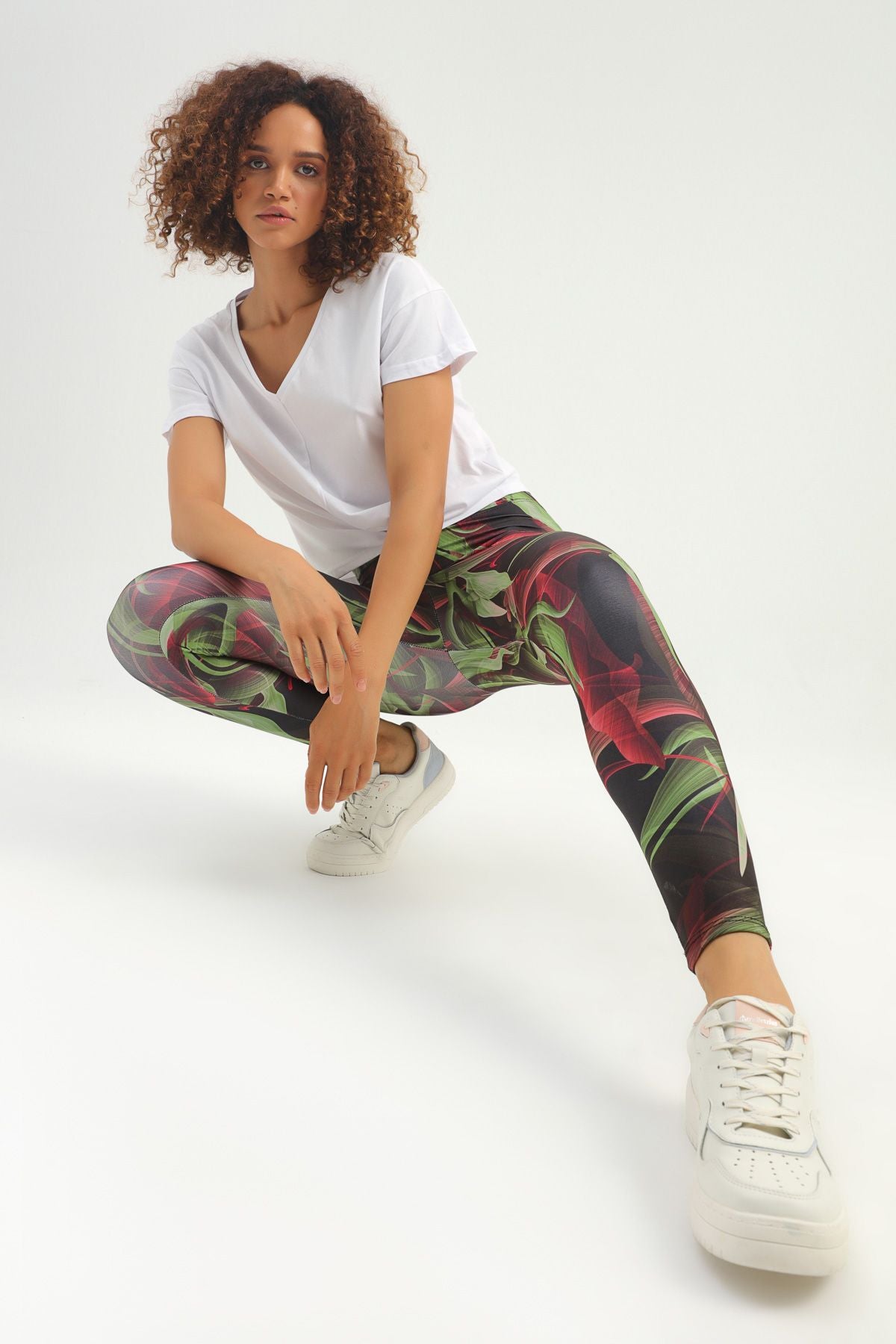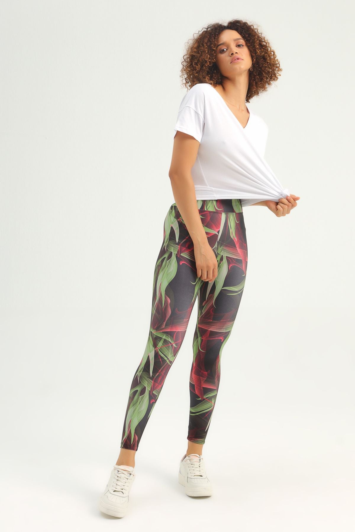 Desenli Yüksek Bel Spor Tayt Haki