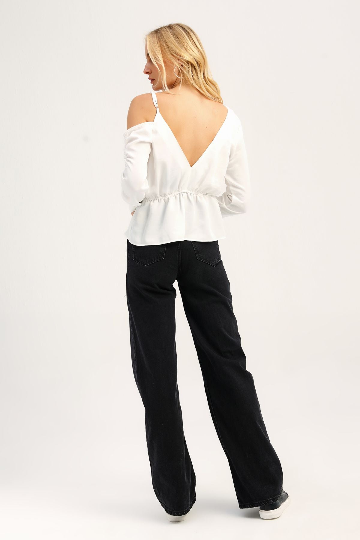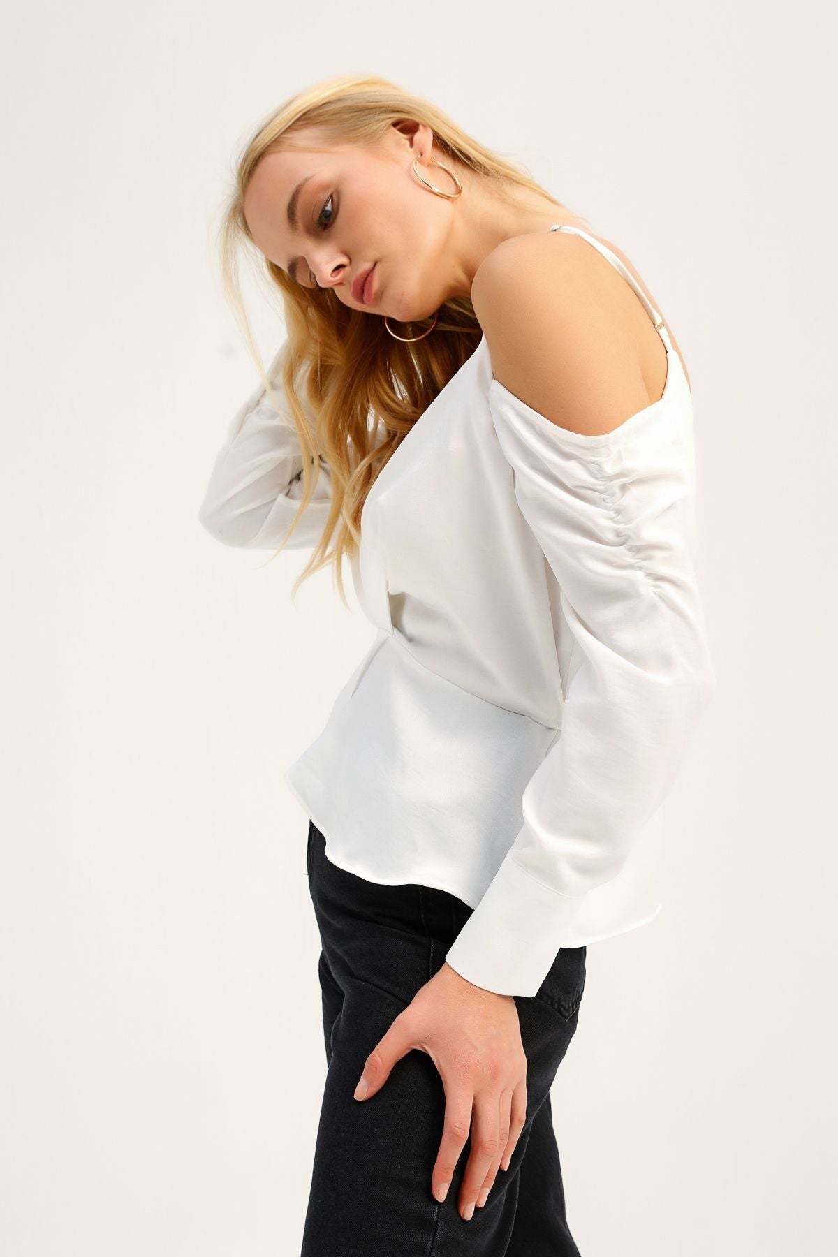 Tek Omuz Kruvaze Bluz Ekru