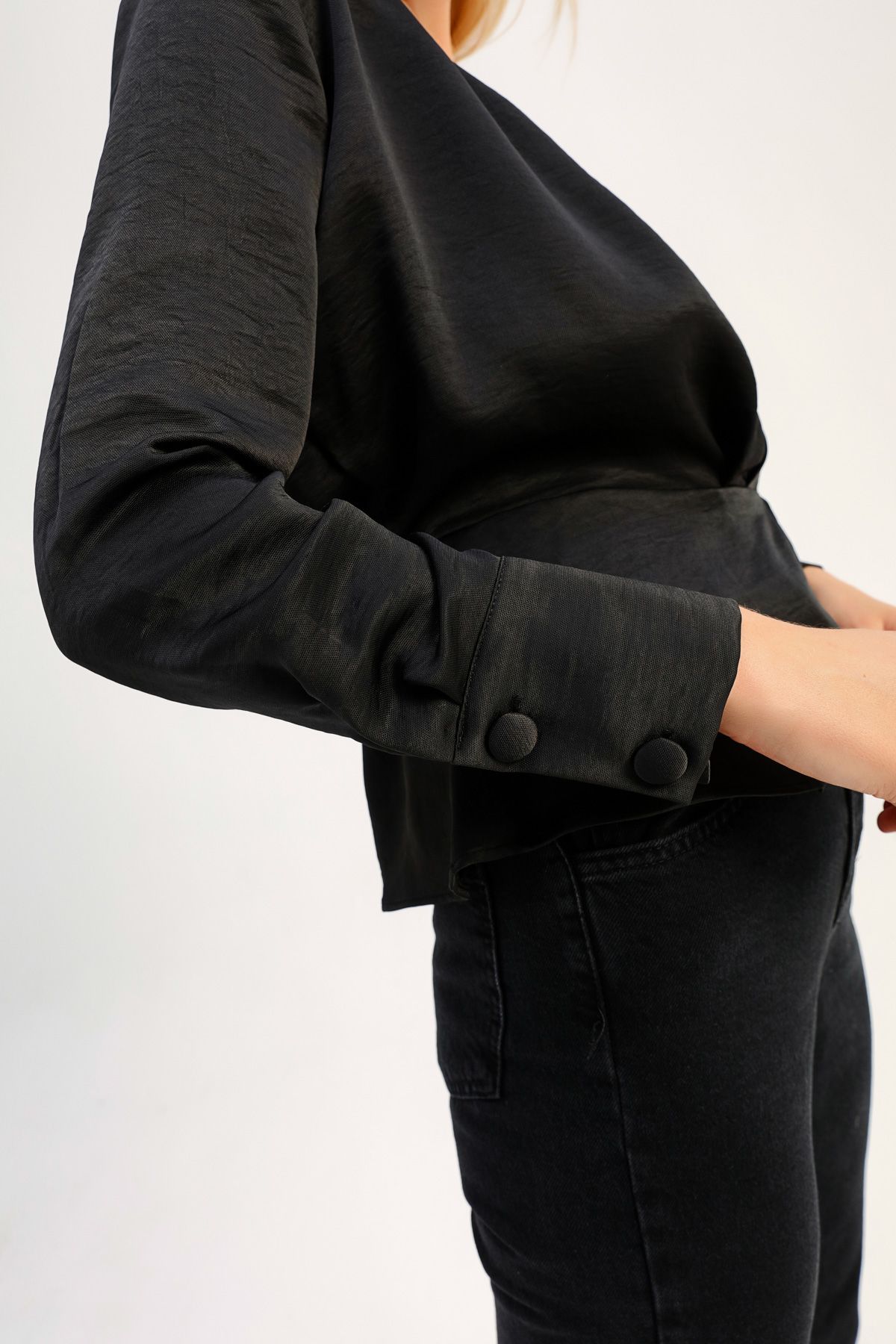 Zamansız ve şık kruvaze detayı ile romantik tavrından ödün vermeden tarzını konuştur! Romantik birlikteliklere dolabında yer açmak için tek omuzlu kruvaze bluz modeli enerjini yükseltmeye hazır! Jeanler ve eteklerin bluzunla mükemmel uyumu yakalaması için, bu parça senin olmalı!