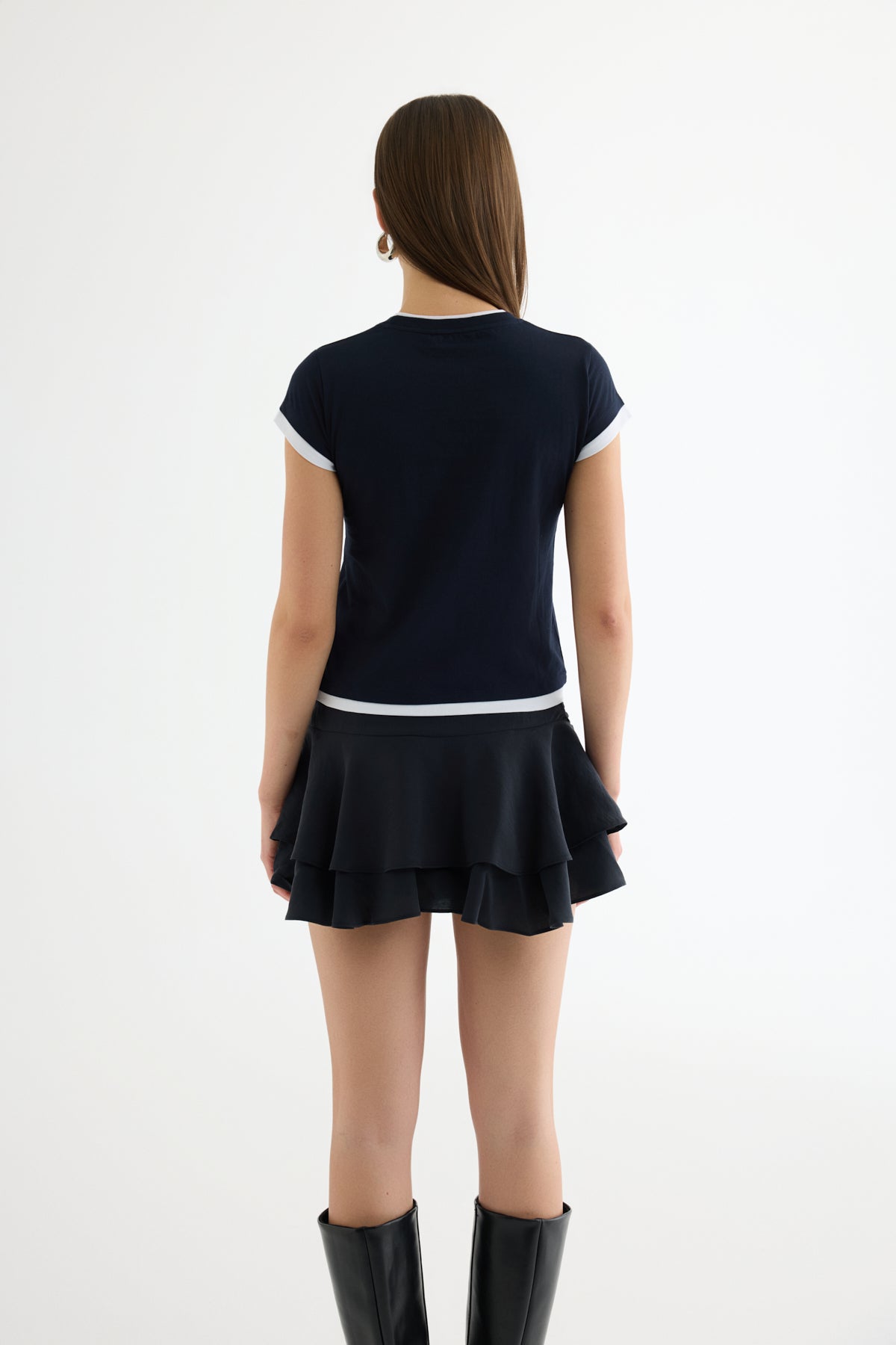 Yazı Baskılı Reglan Garnili Tişört Lacivert
