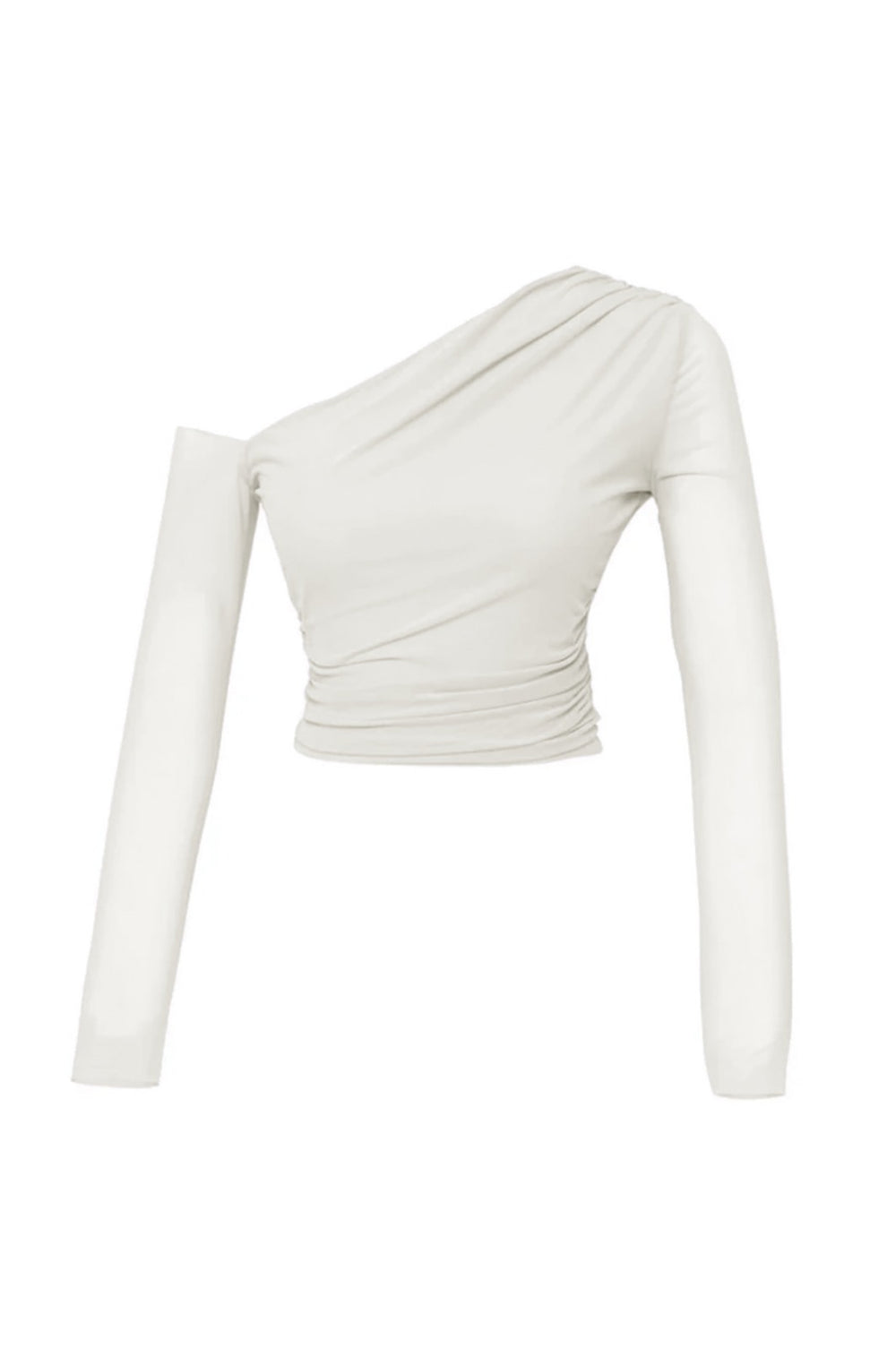 Düşük Omuz Detaylı Tül Bluz Ekru
