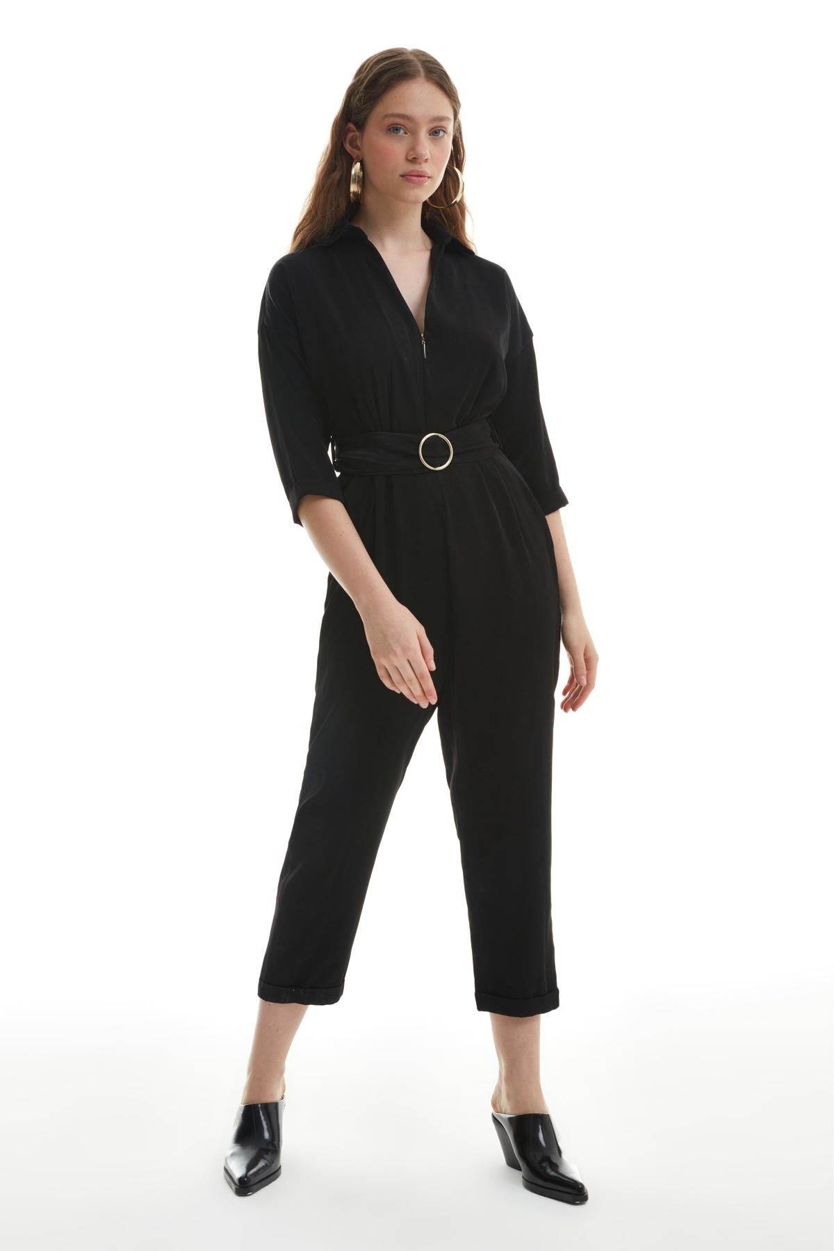 Fermuar Detaylı Tulum Siyah