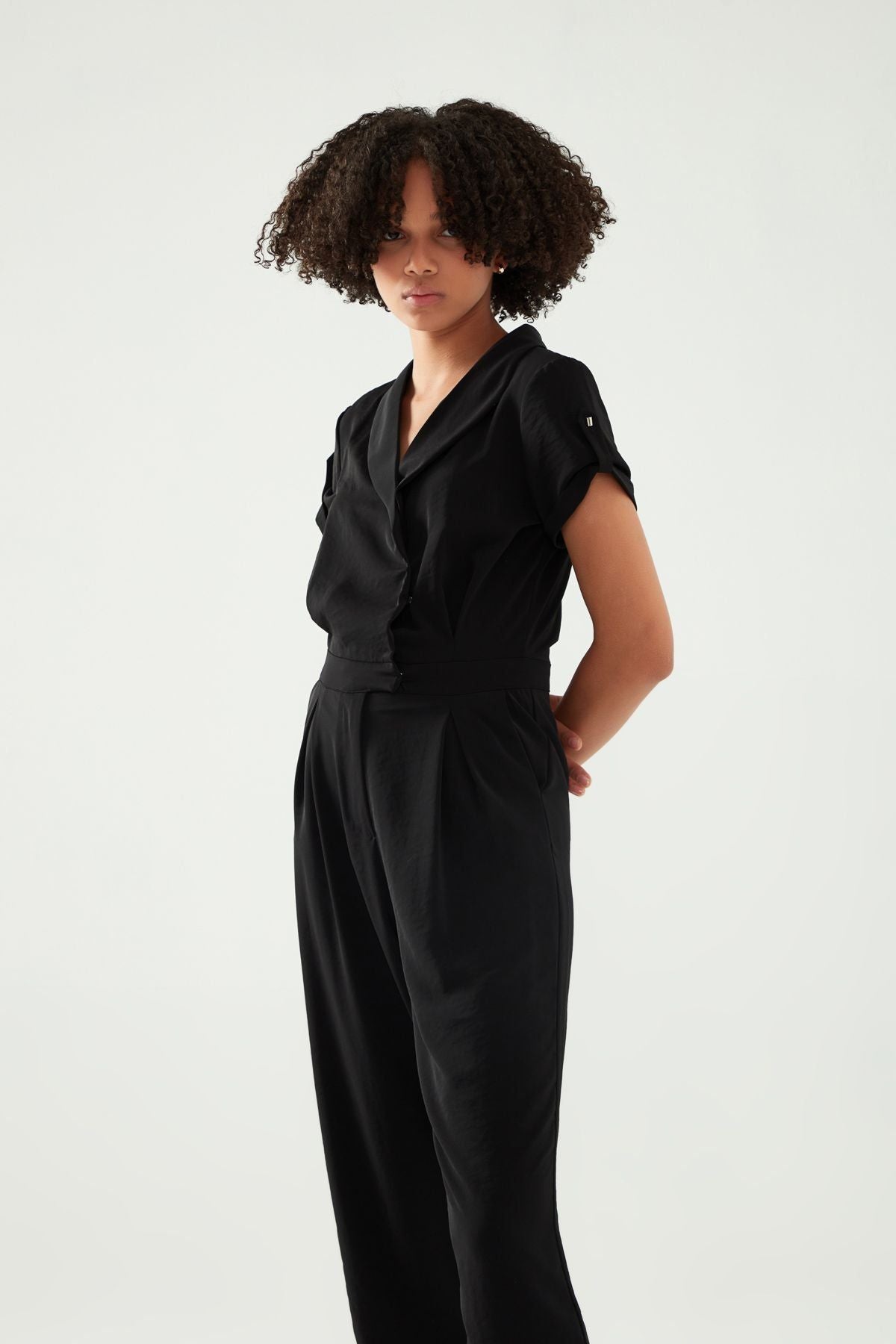 Kruvaze Yaka Tulum Siyah