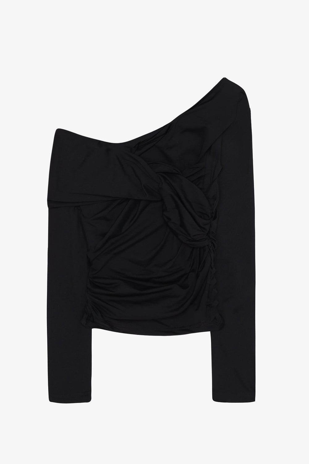 Drapeli Asimetrik Düğümlü Bluz Siyah