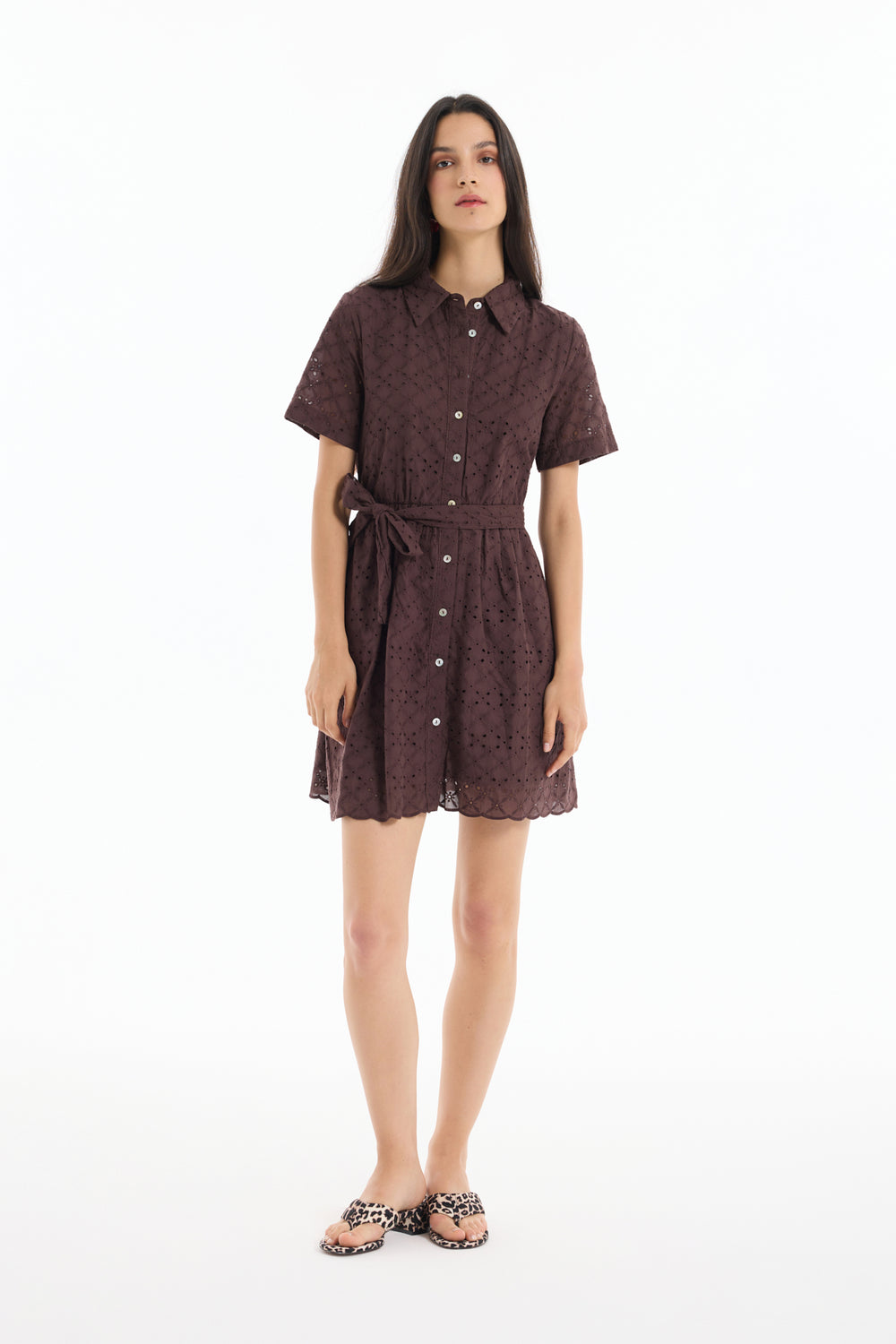İçi kendi renginden astarlı, kısa kollu, fisto detaylı, düğme kapamalı, kuşak kemer aksesuarlı, mini boy gömlek elbise.
