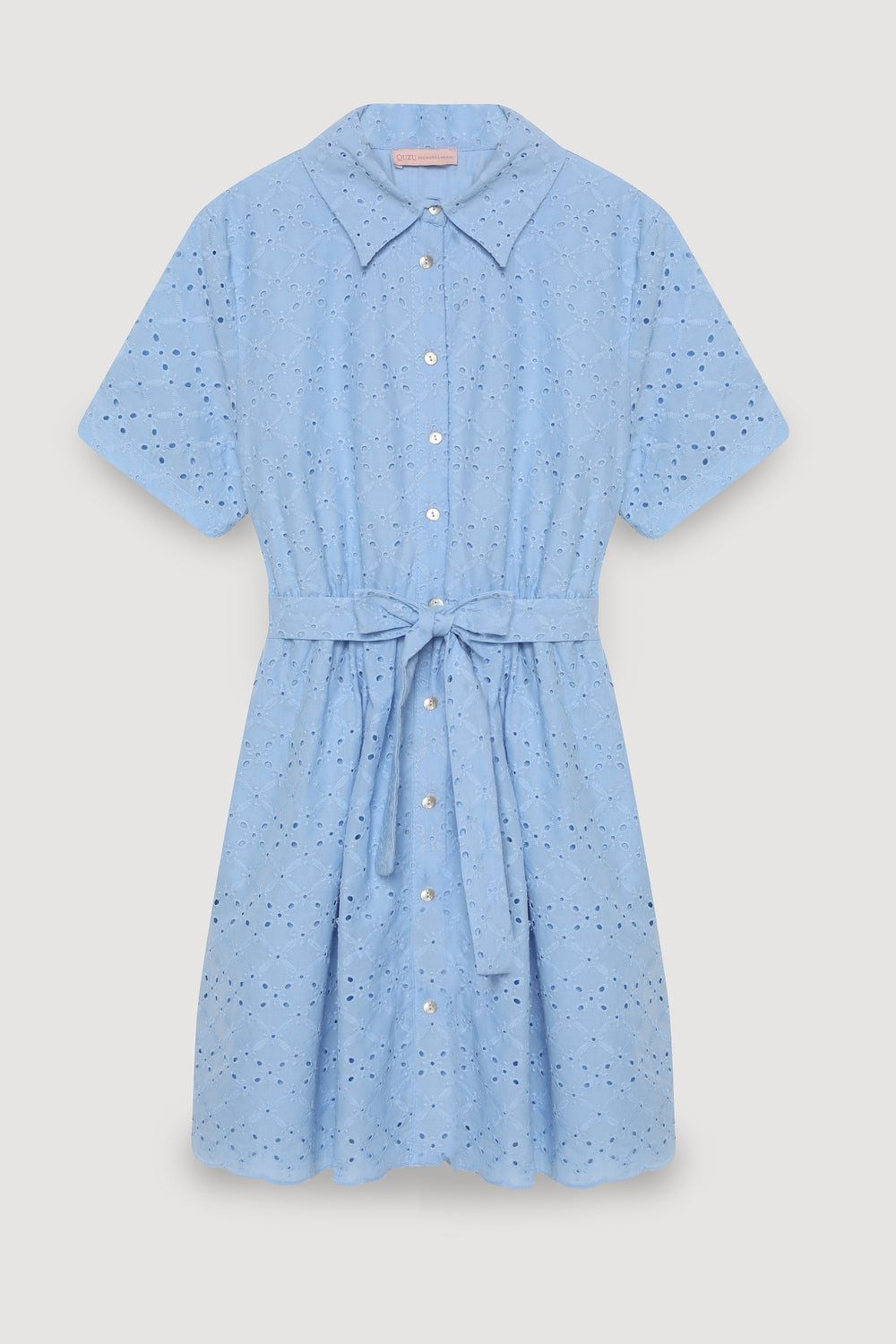 İçi kendi renginden astarlı, kısa kollu, fisto detaylı, düğme kapamalı, kuşak kemer aksesuarlı, mini boy gömlek elbise.