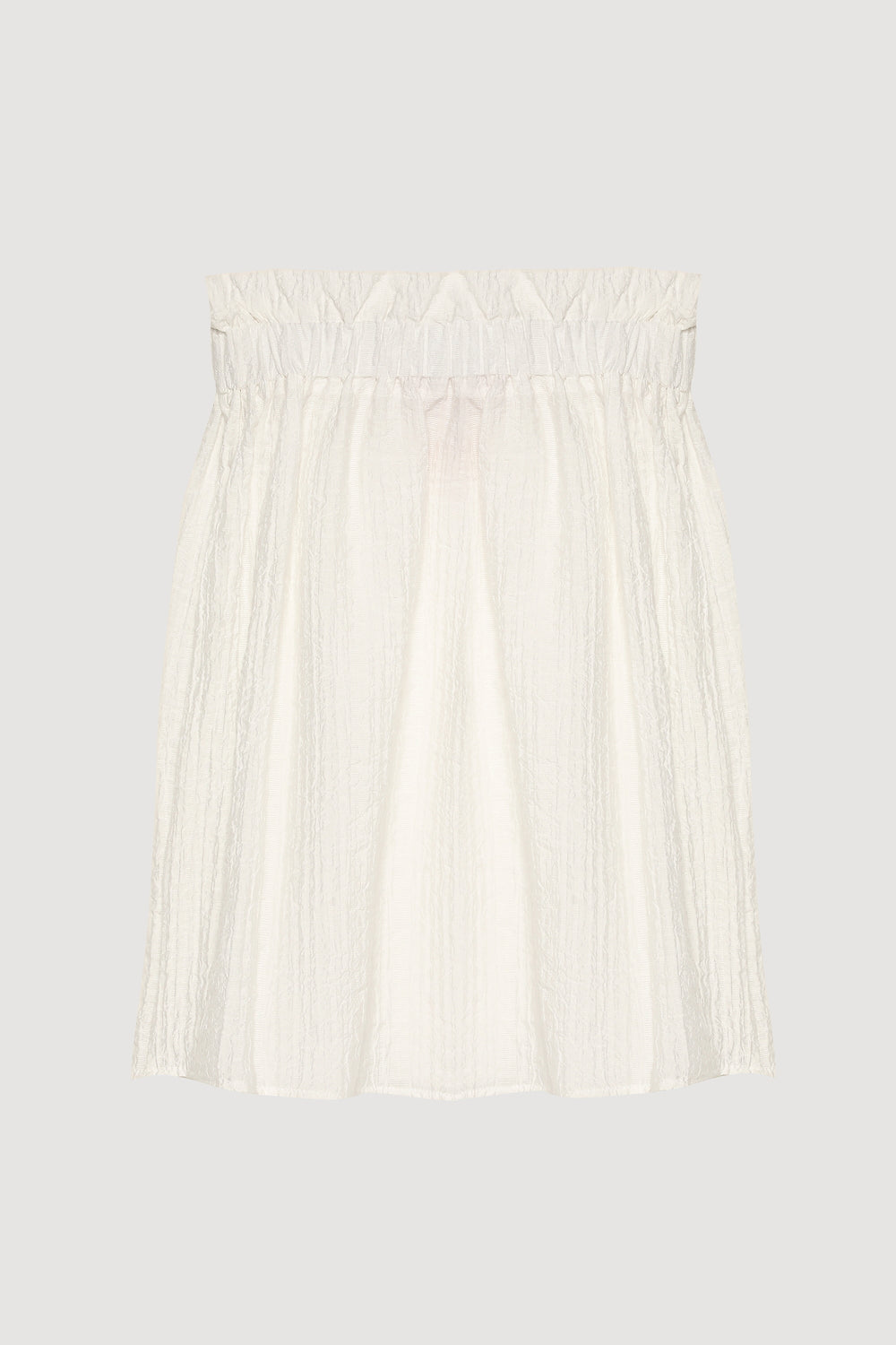 Gofre Kumaş Fırfırlı Straplez Bluz Ekru
