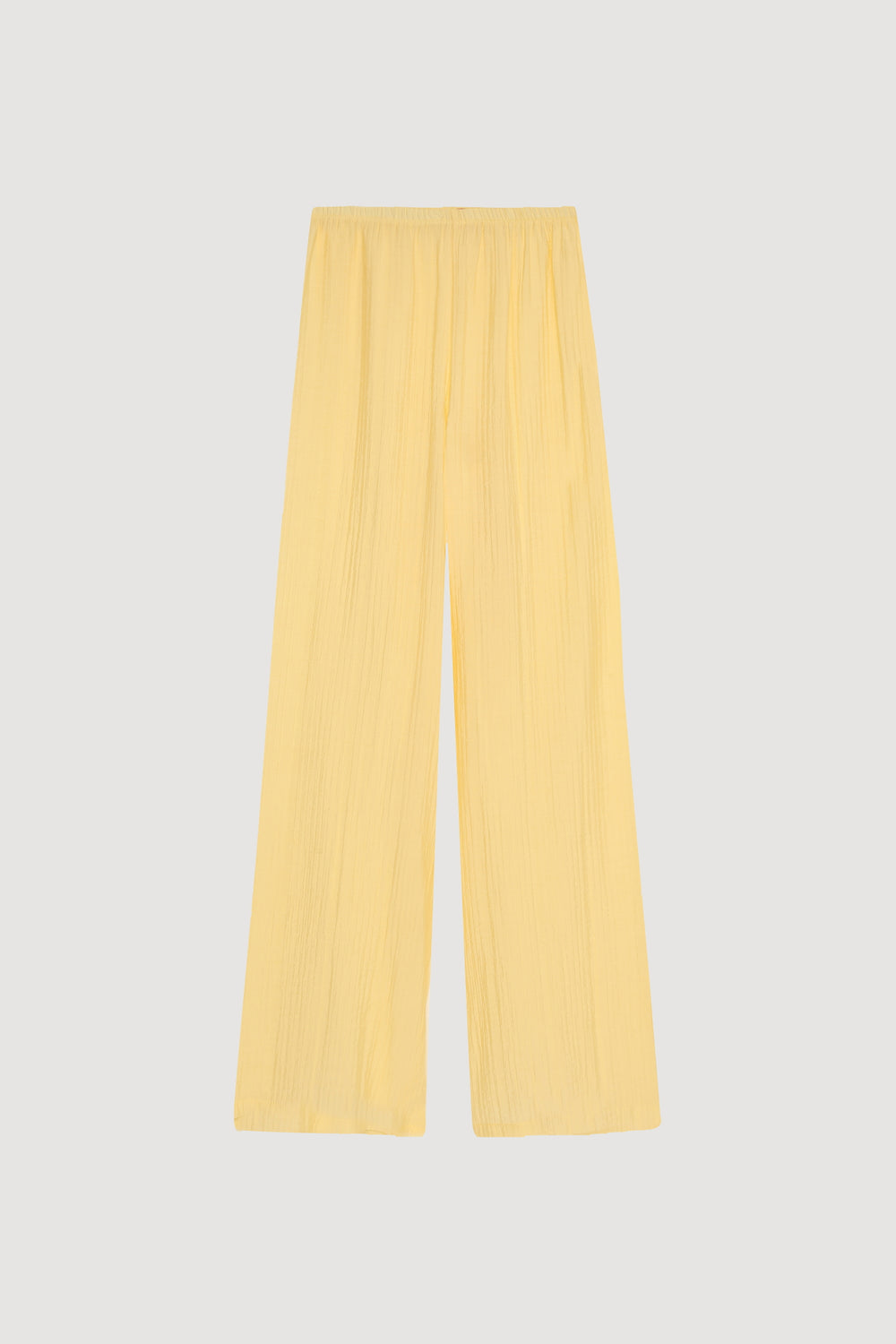 Gofre Kumaş Geniş Paça Pantolon Sarı