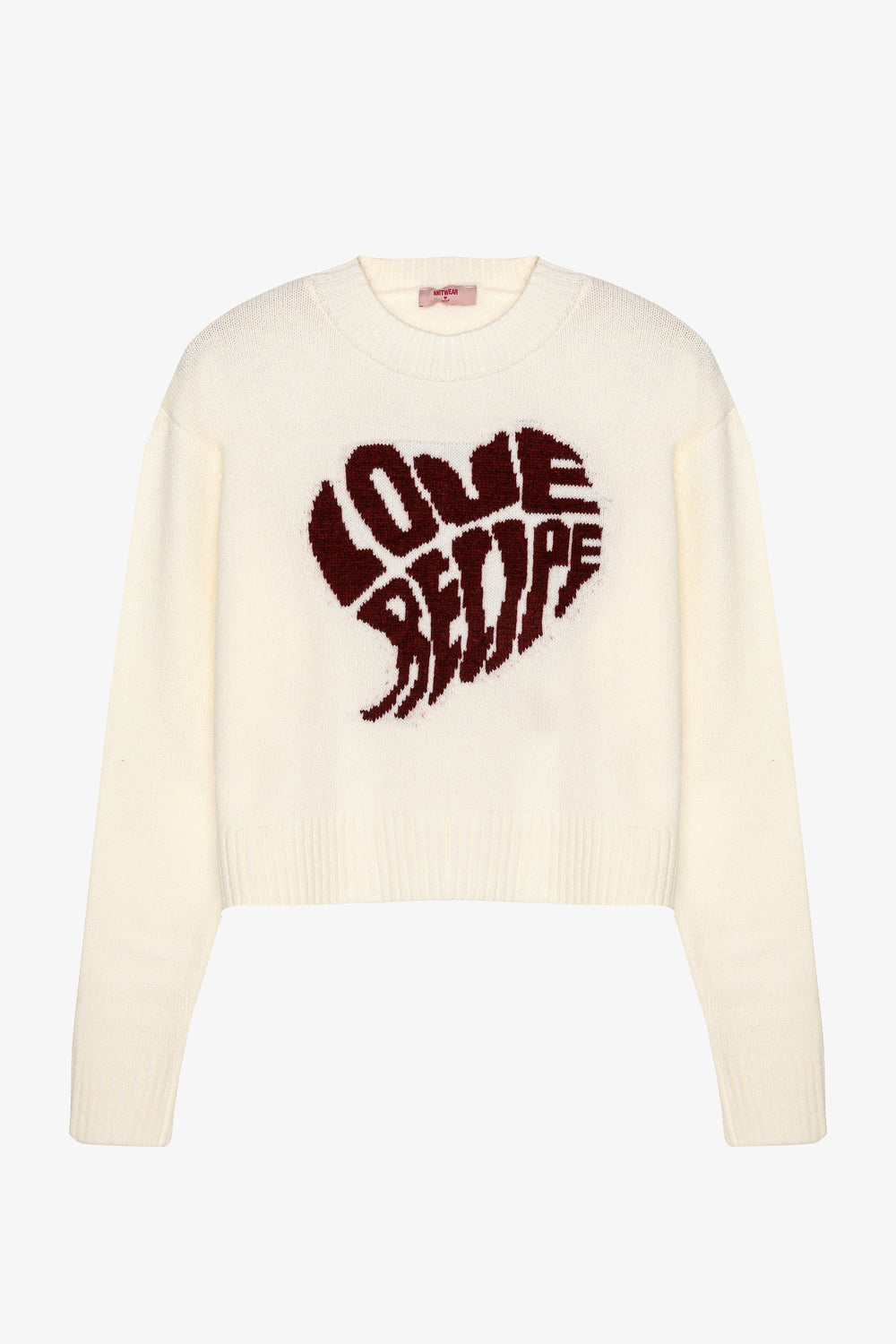Kalp Yazı Desenli Triko Kazak Ekru