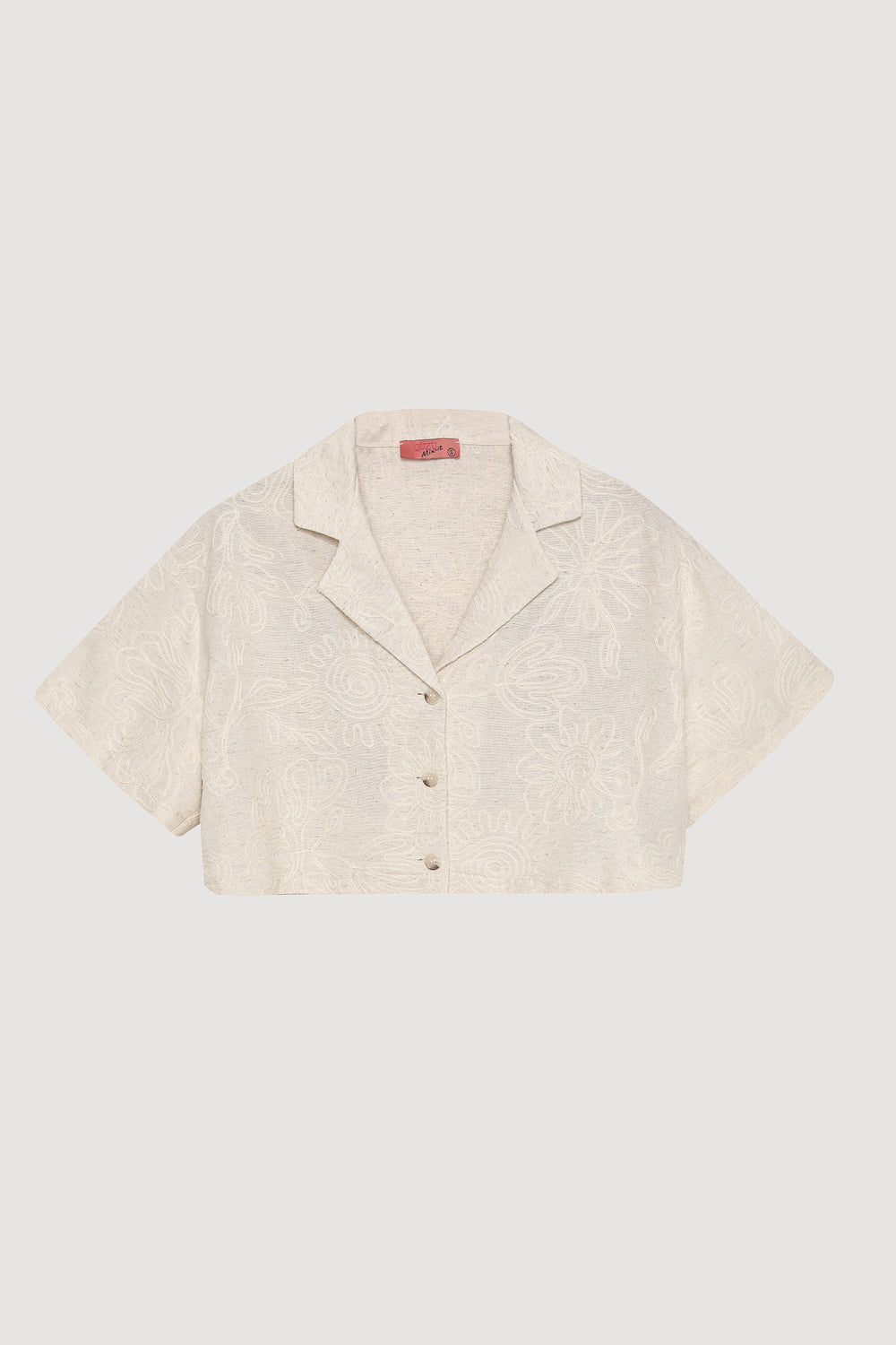 Nakış İşlemeli Keten Crop Gömlek Naturel