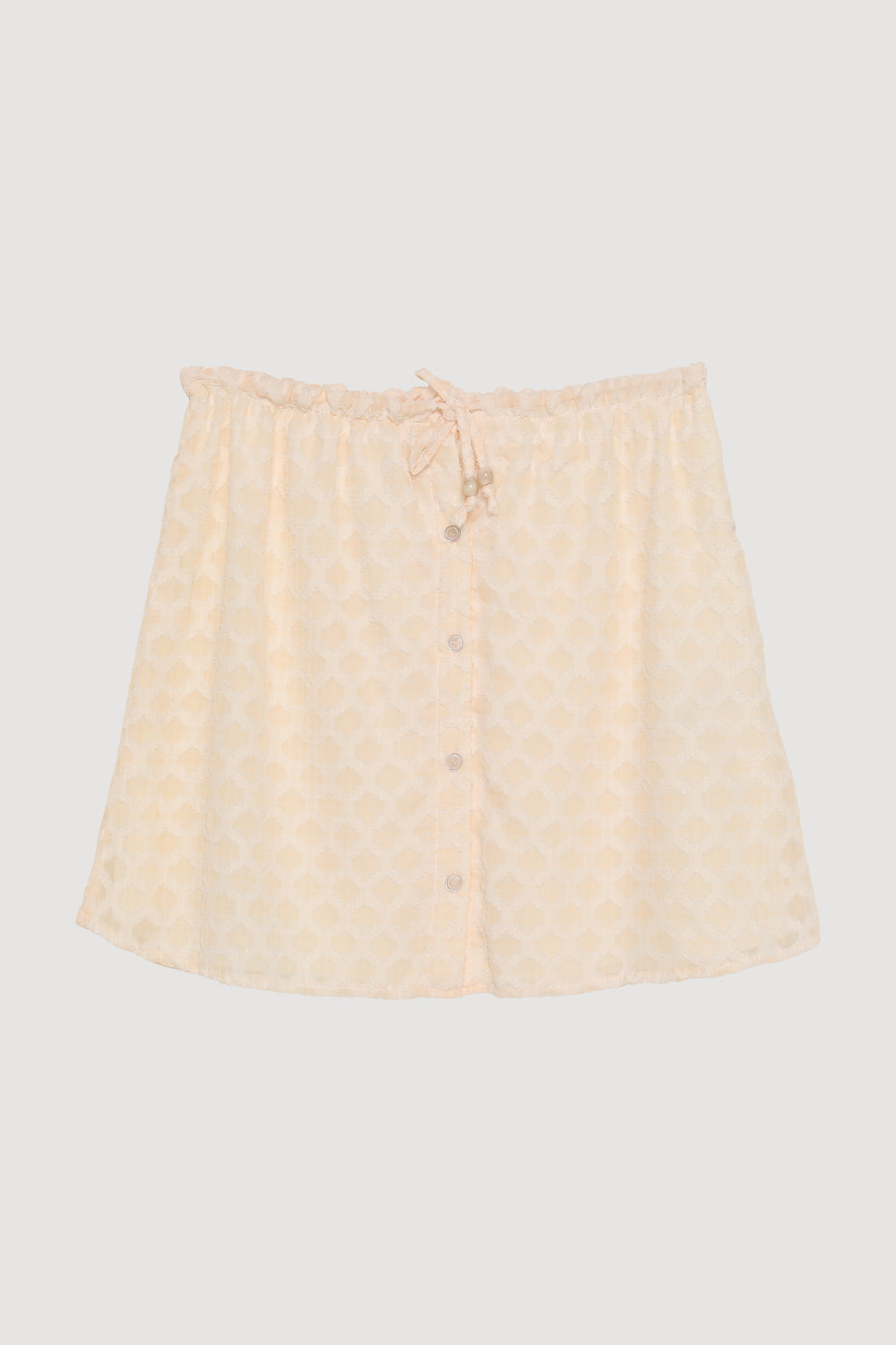 Önden Düğmeli Beli Lastikli Dokulu Mini Etek Ekru