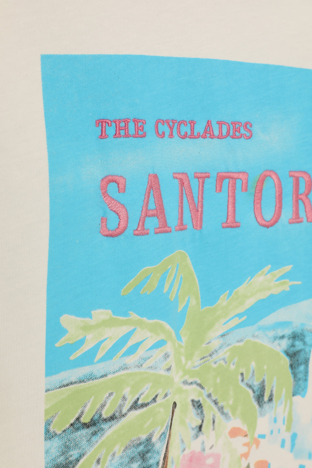 Santorini Baskılı Renkli Tişört Ekru