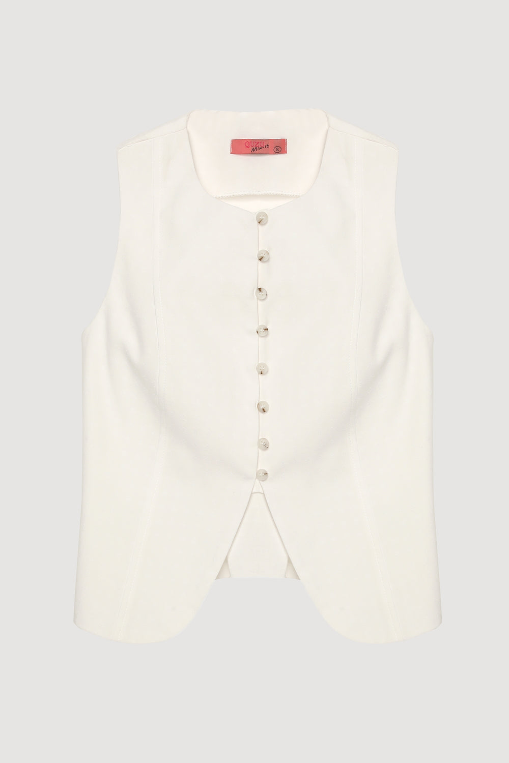Sırtı İp Bağlamalı Düğmeli Bluz Ekru