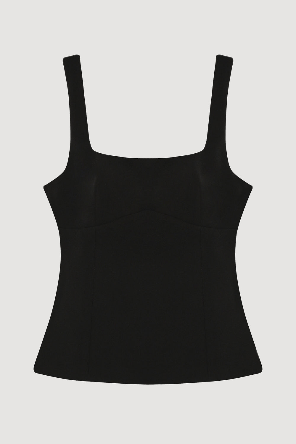 Sırtı Kurdele Detaylı Kare Yaka Askılı Bluz Siyah